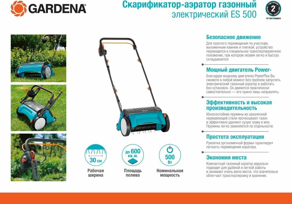 Эл.газонный скарификатор-аэратор ES 500 арт.04066-20.000.00 интересное: