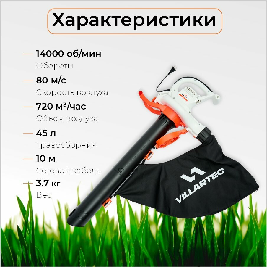 Воздуходувка электрическая садовая VILLARTEC BE264 / садовый пылесос воздуходувка интересное:
