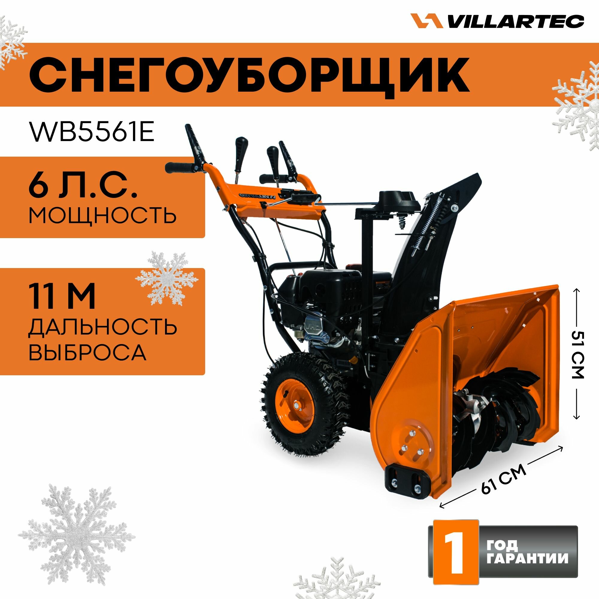 Снегоуборщик бензиновый самоходный VILLARTEC WB5561E / техника для уборки снега, снегоуборочная машина интересное: