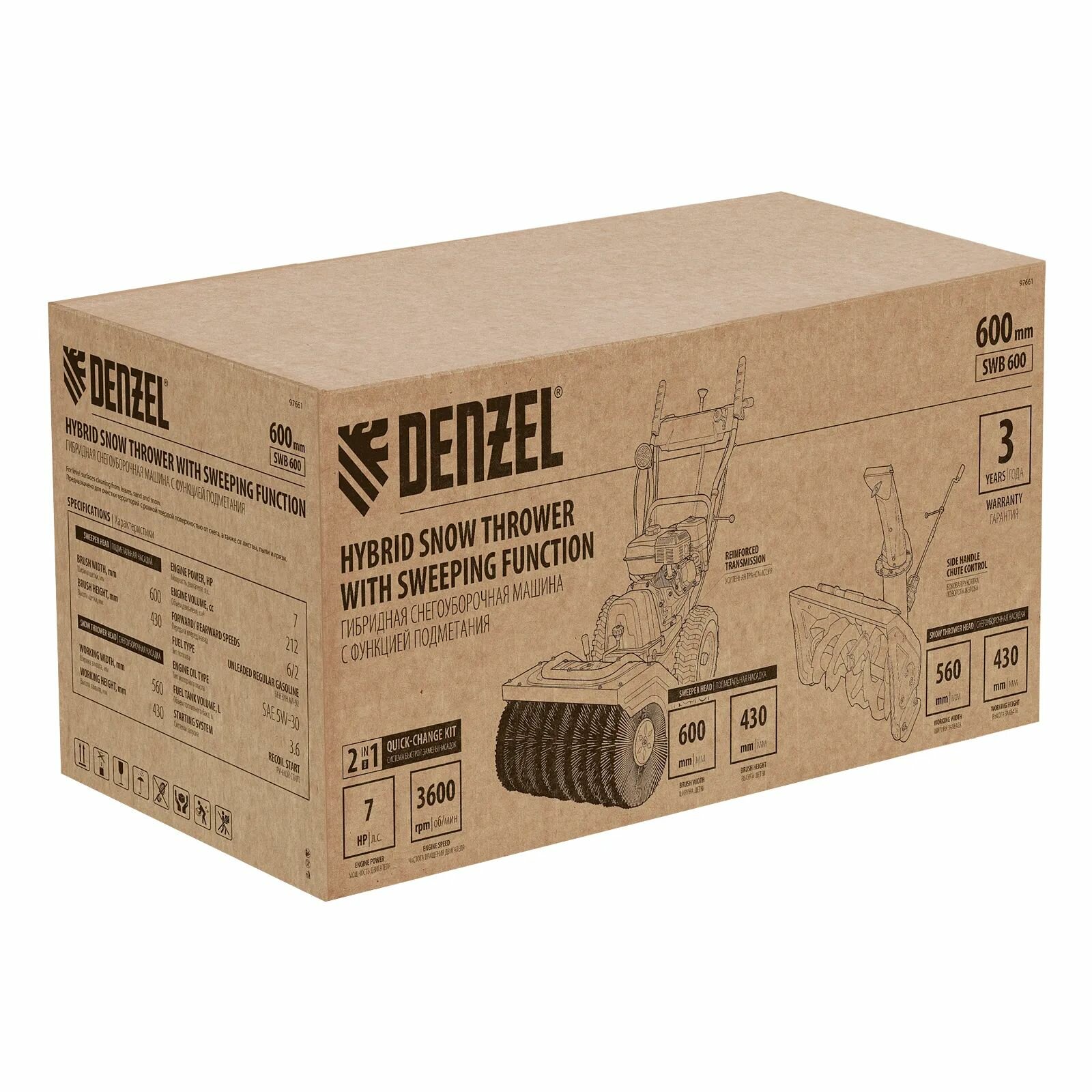 Купить Гибридная снегоуборочная машина с функц. подметания SWB-600, 212 сс, руч. старт, 2 насадки Denzel