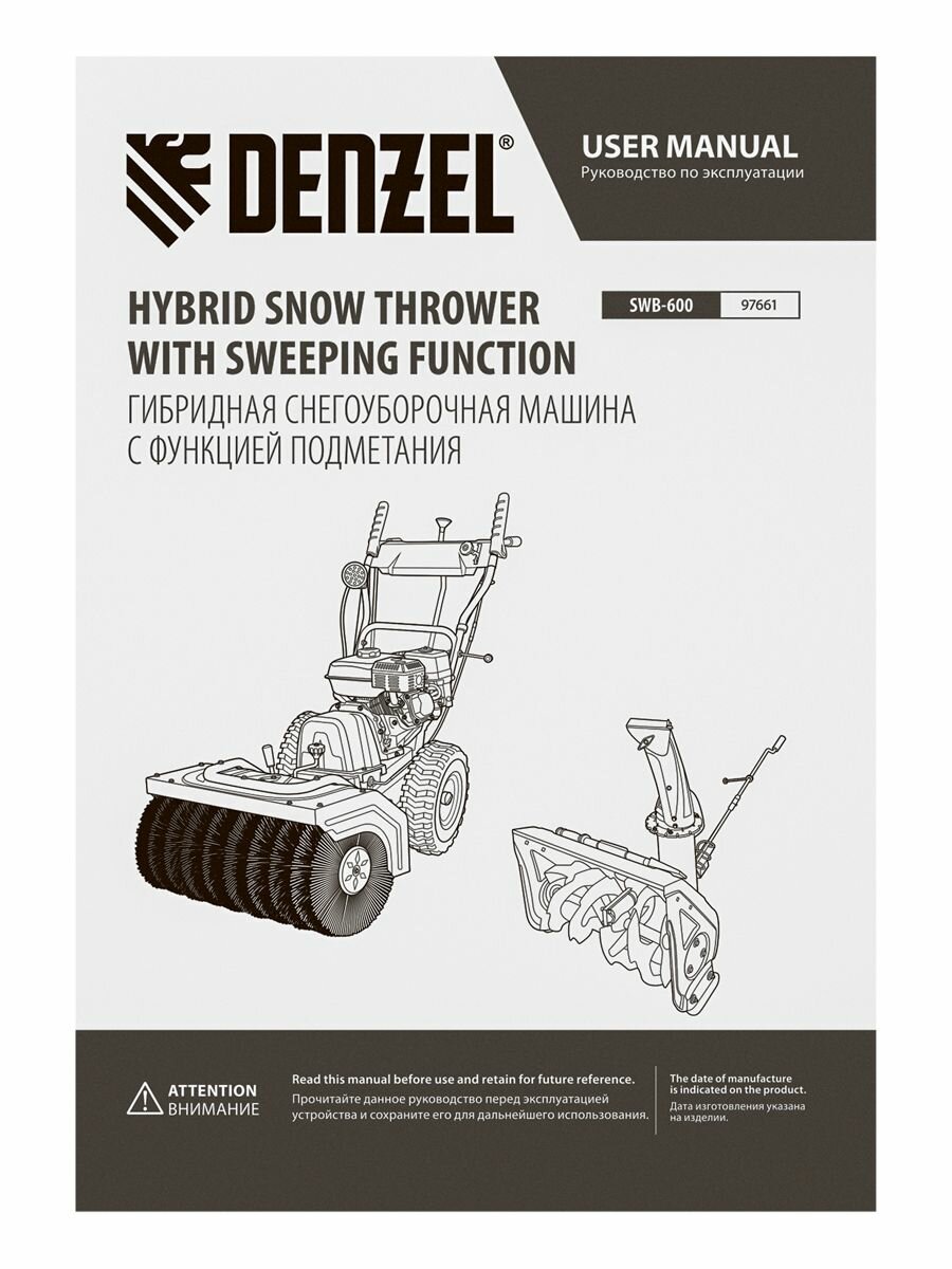 СохранитьГибридная снегоуборочная машина с функц. подметания SWB-600, 212 сс, руч. старт, 2 насадки Denzel интересное: