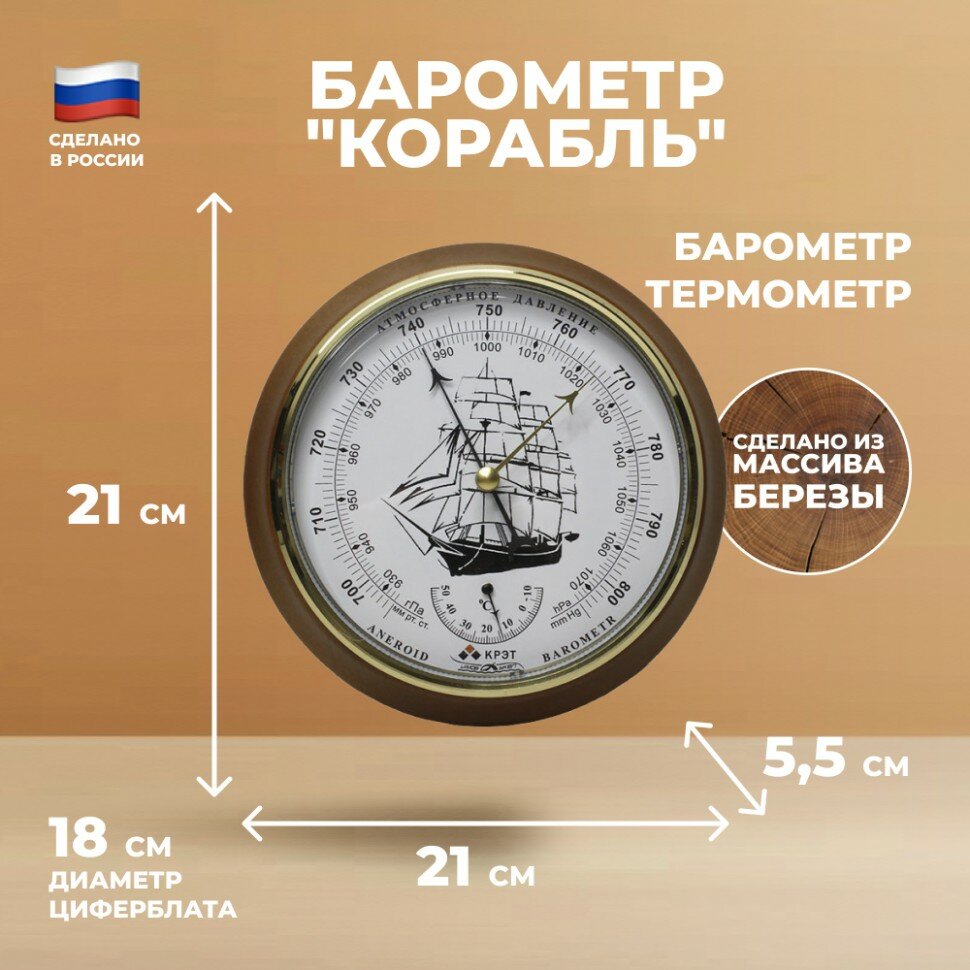 Утёс Барометр "Корабль" с термометром (21 см, "Утёс") интересное: