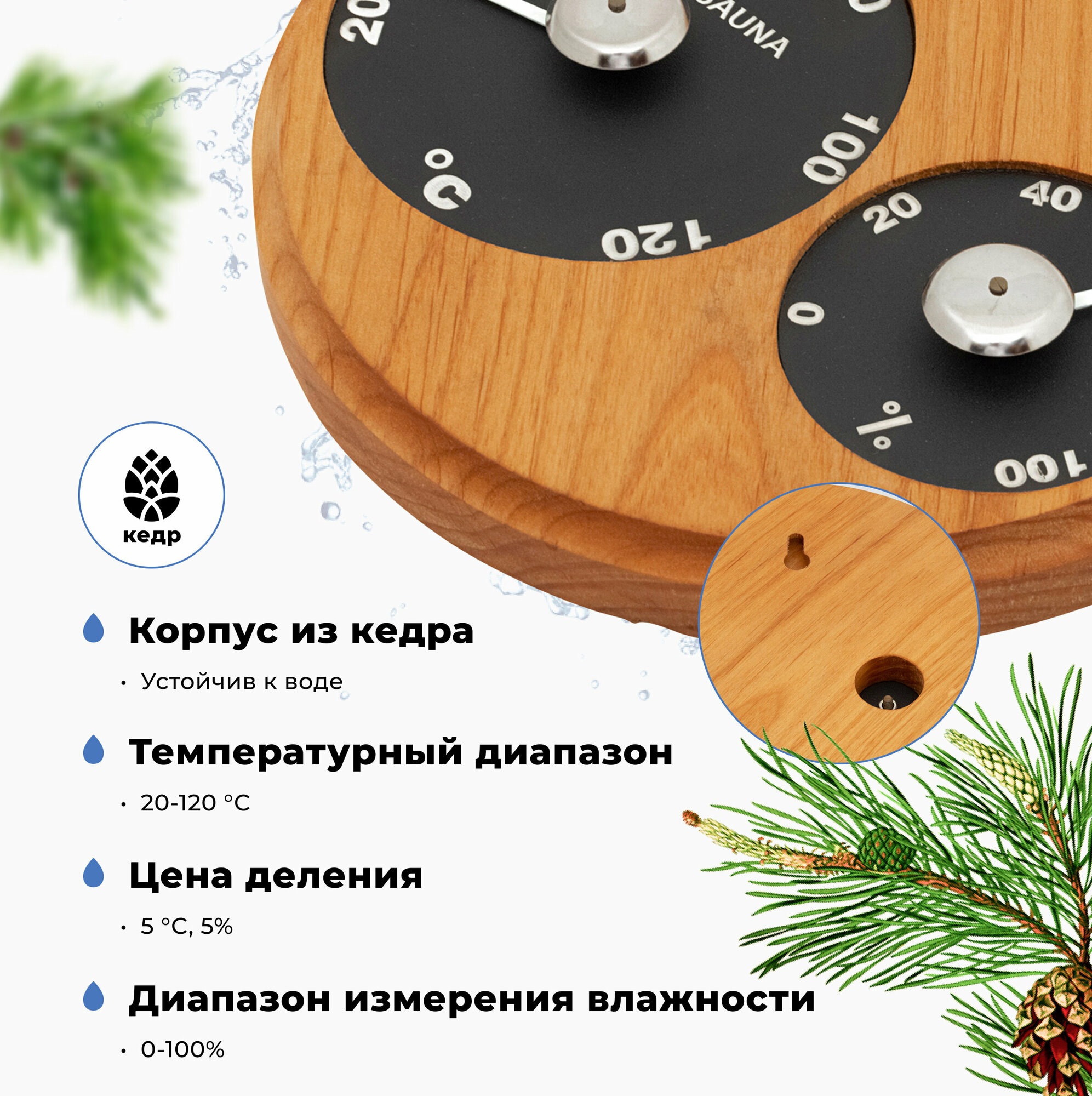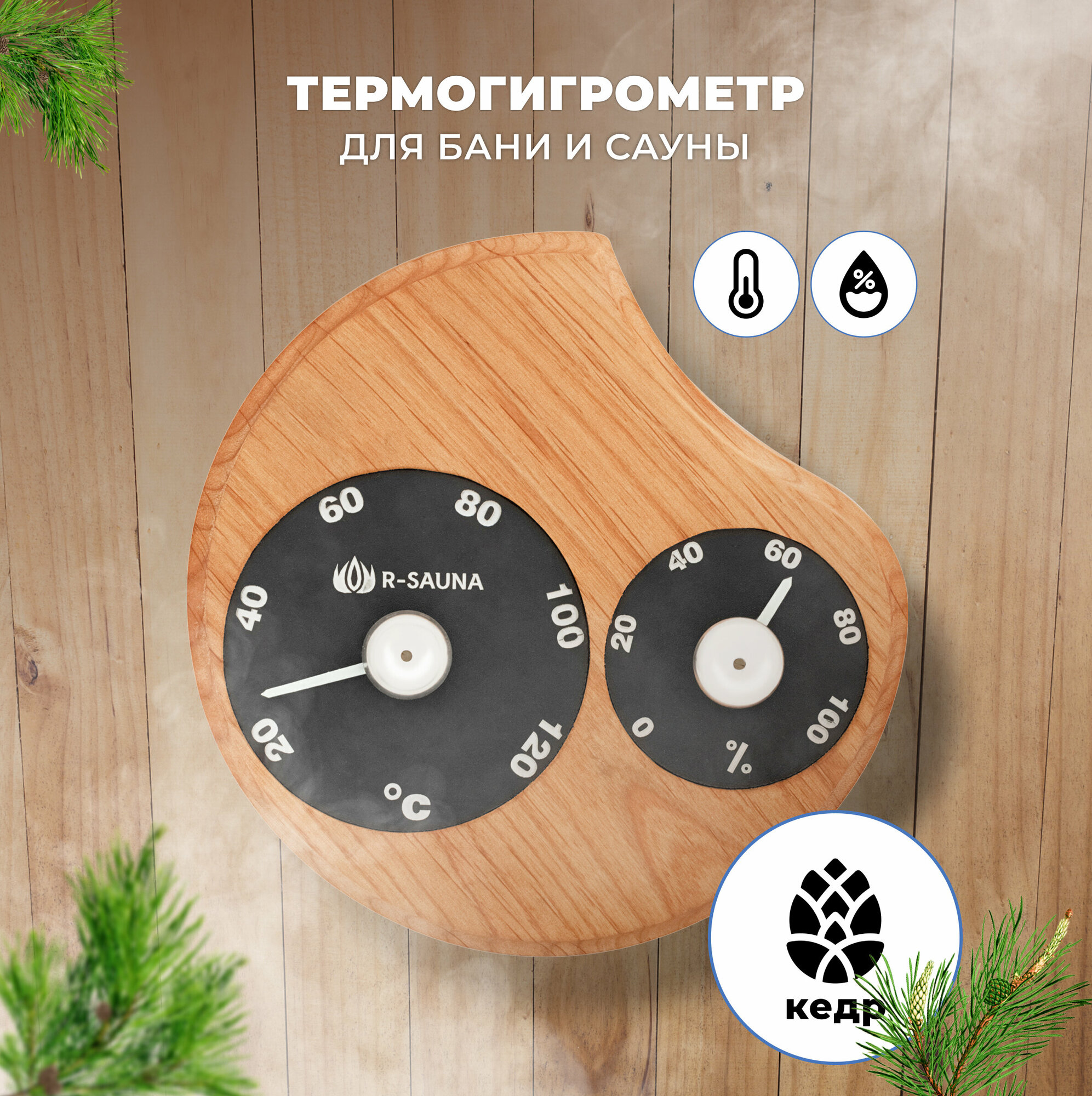 Термогигрометр для бани и сауны Капля R-SAUNA, канадский кедр, банная станция интересное: