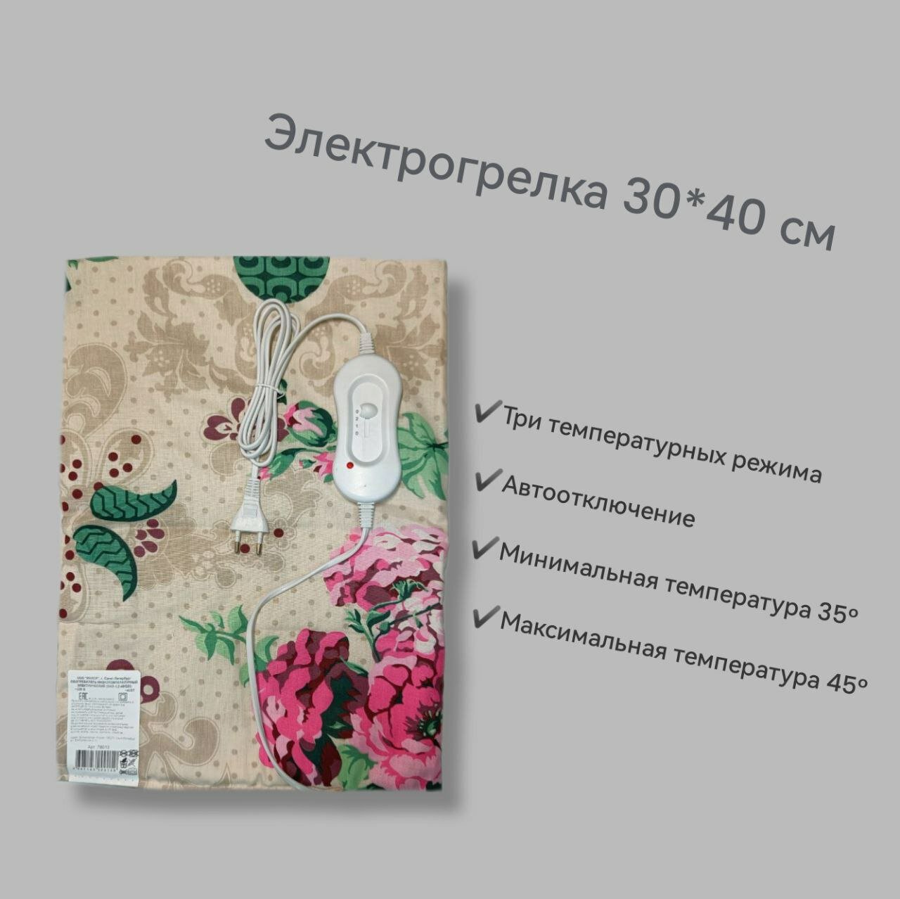 Электрогрелка 30 х 40 см бежевая с цветами интересное:
