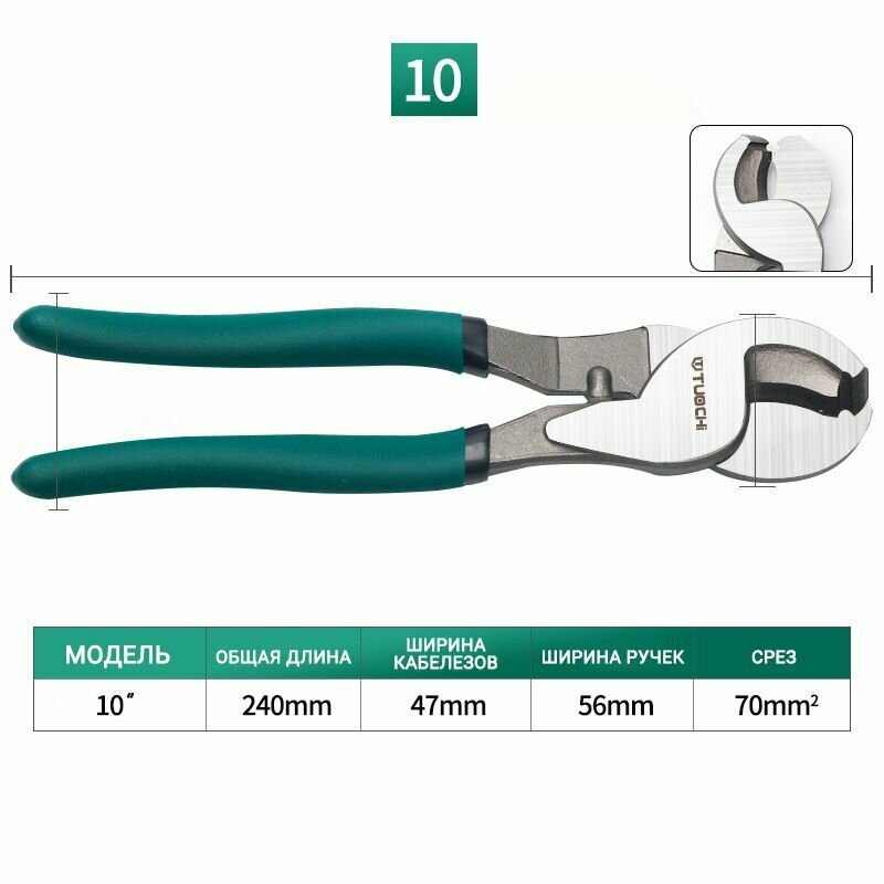 Кабельные ножницы TUOCHI диэлектрический ручной для медных и алюминиевых кабелей 250 мм, CR-V интересное: