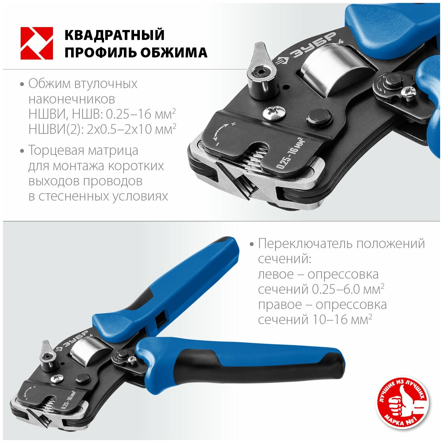 Купить ЗУБР ПКТ-16-4 0.25-16мм2 с квадратным профилем для втулочных наконечников, Мультидиапазонные торцевые пресс-клещи, Профессионал (22694)
