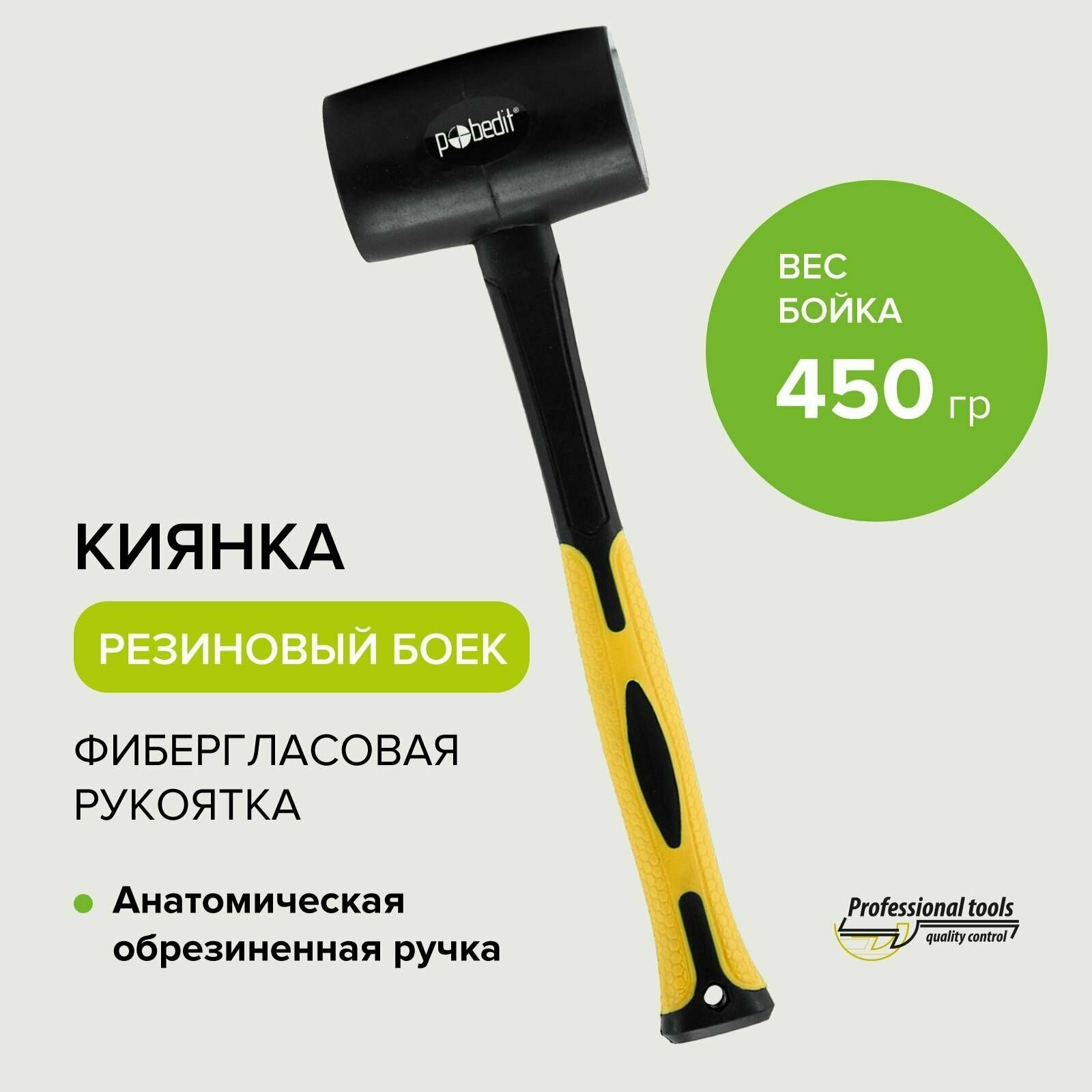 Киянка резиновая черная с фиберглассовой рукояткой, 450 г Pobedit интересное: