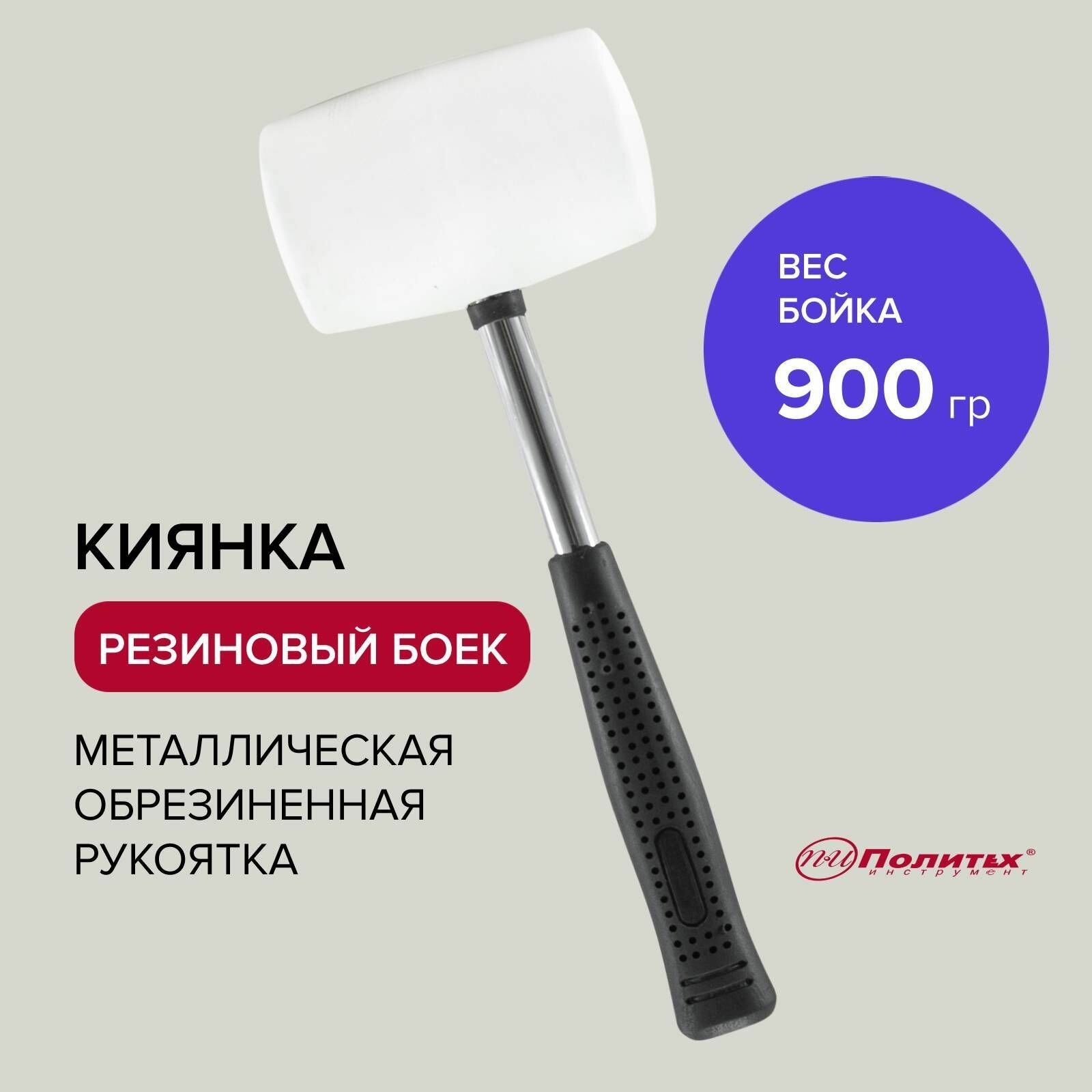 Киянка Политех Инструмент 450 гр белая, металлическая обрезиненная рукоятка