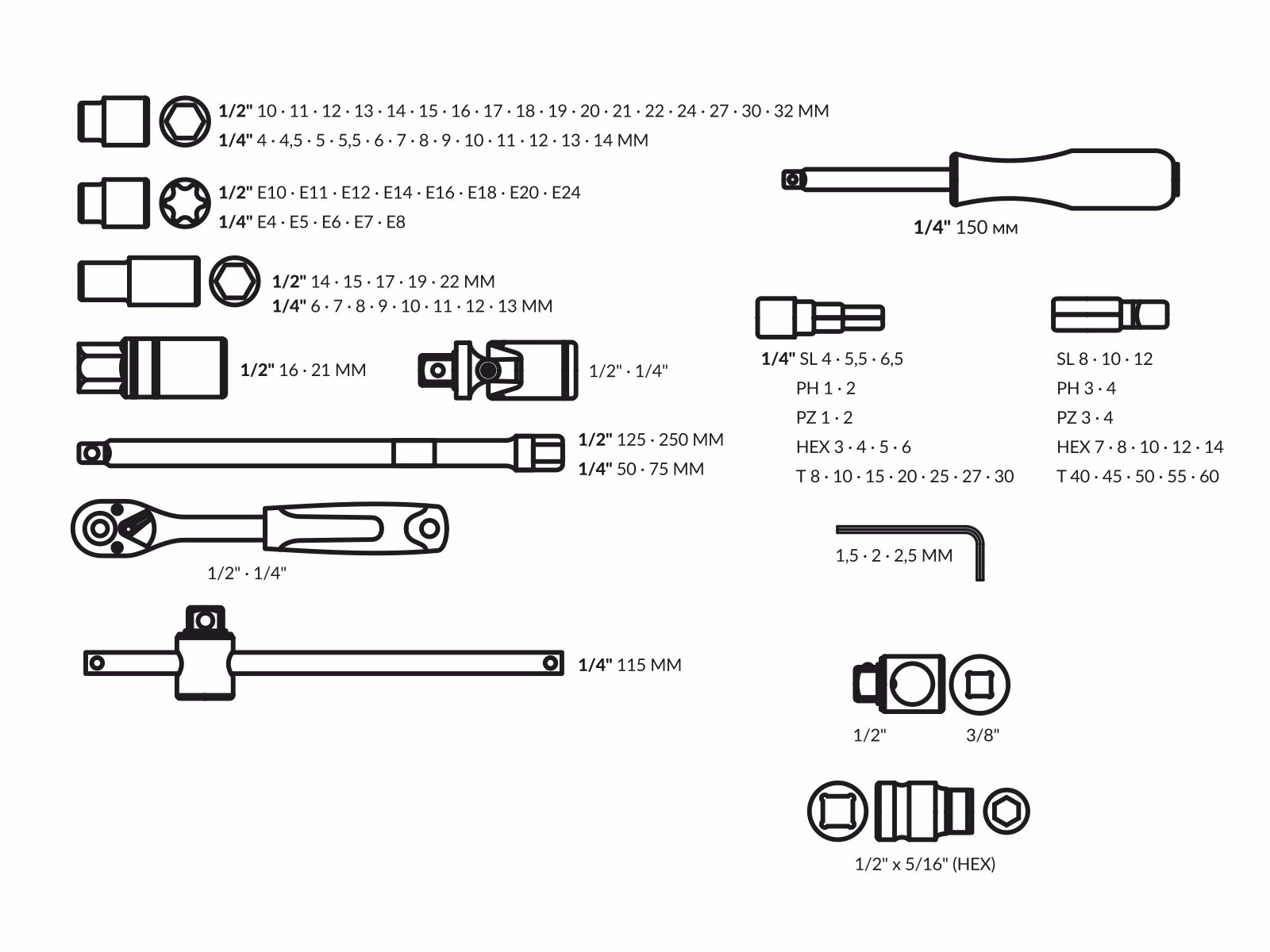 Набор инструментов 1/4", 1/2" 6 граней 108 предметов трек (TR13108) интересное: