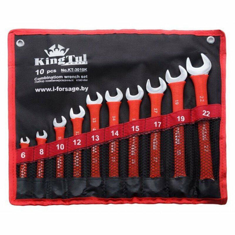 Набор ключей комбинированных 10пр. (6,8,10,12,13,14,15,17,19,22 мм) на полотне KingTul kraft KT-3010k интересное: