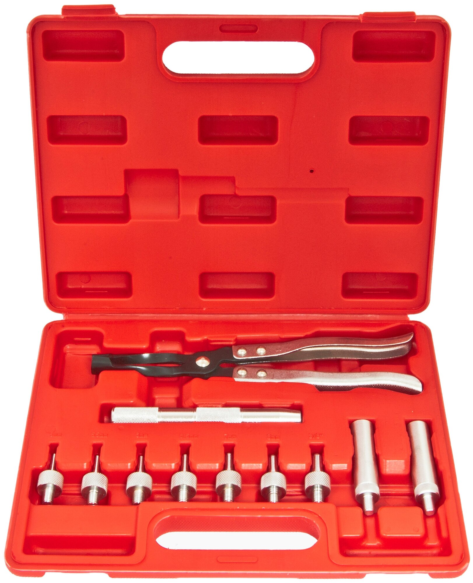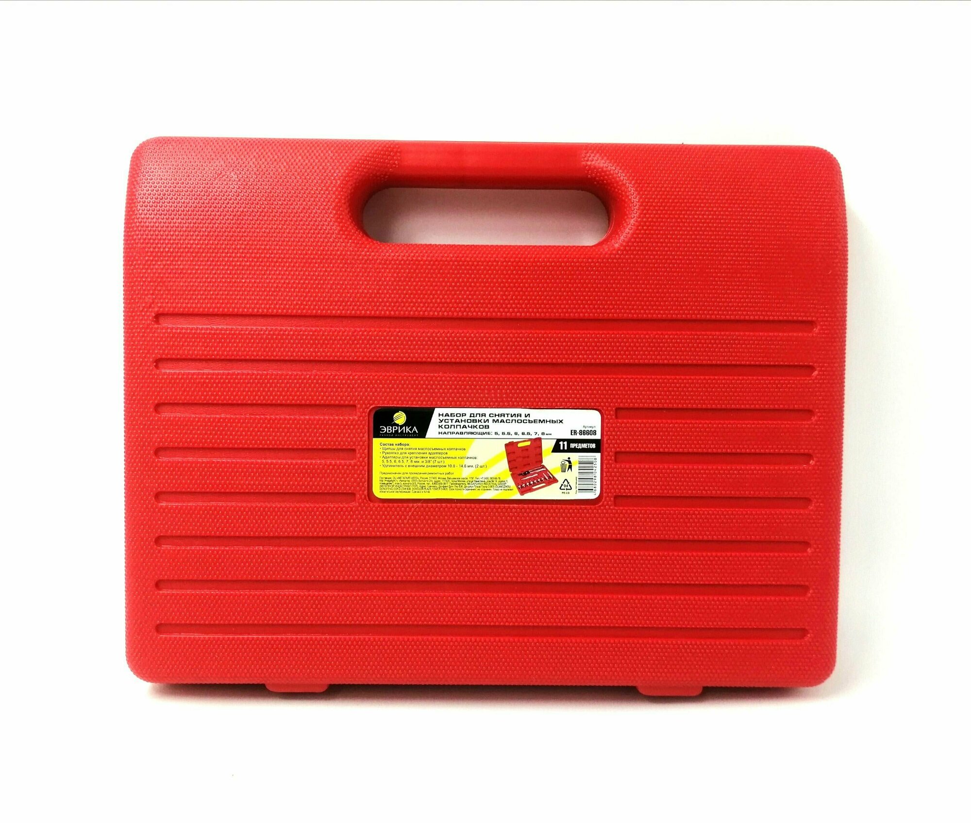 Набор инструментов+для снятия + и установки маслосъемных колпачков ER-86608 (направляющие: 5, 5.5, 6, 6.5, 7, 8мм, 3/8"), 11пр., в кейсе эврика интересное: