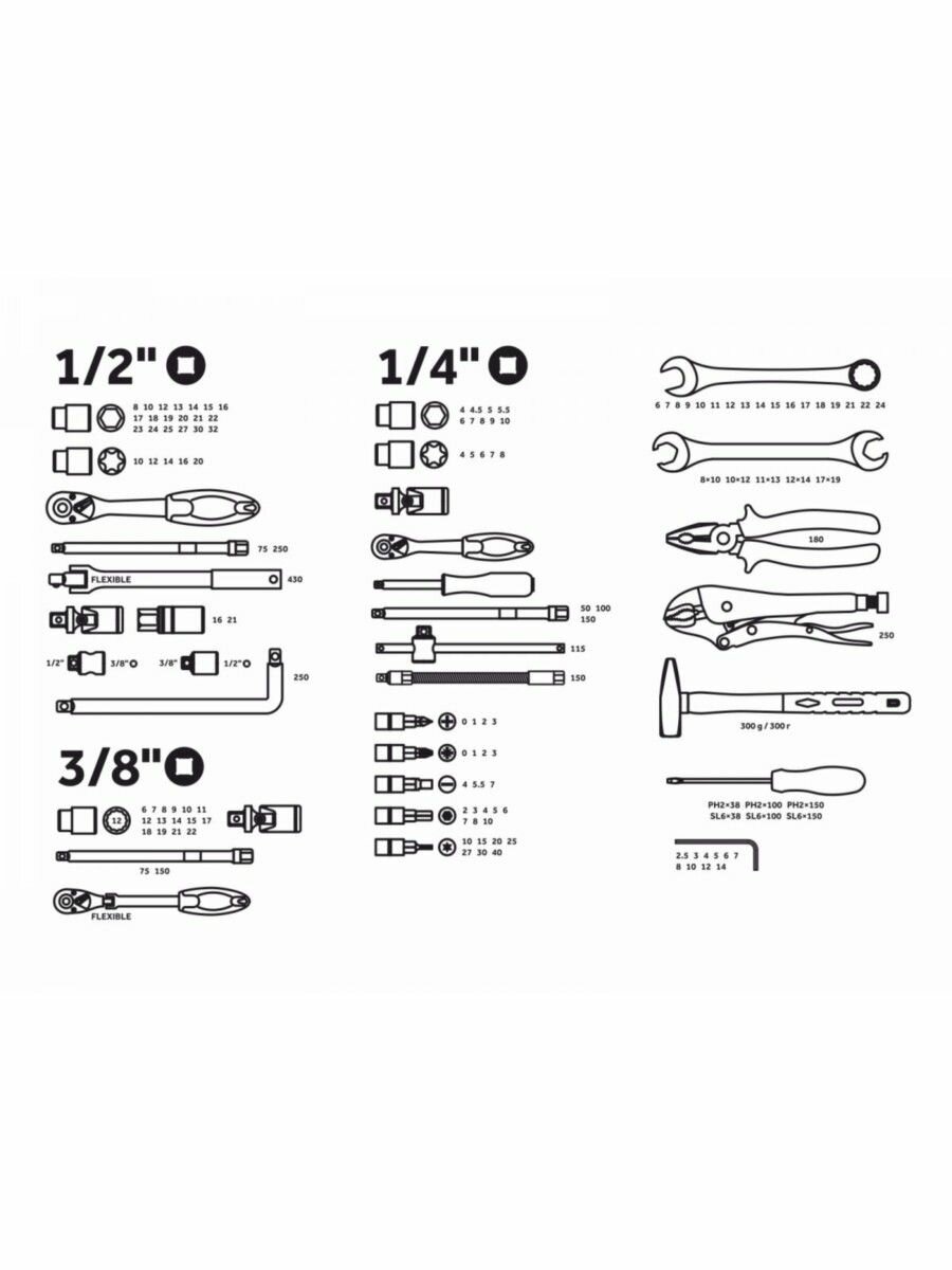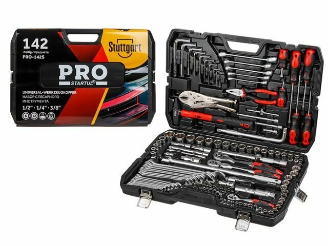 Набор инструментов STARTUL PRO Stuttgart 1/4", 3/8", 1/2" 6 граней, 142 предмета PRO-142S
