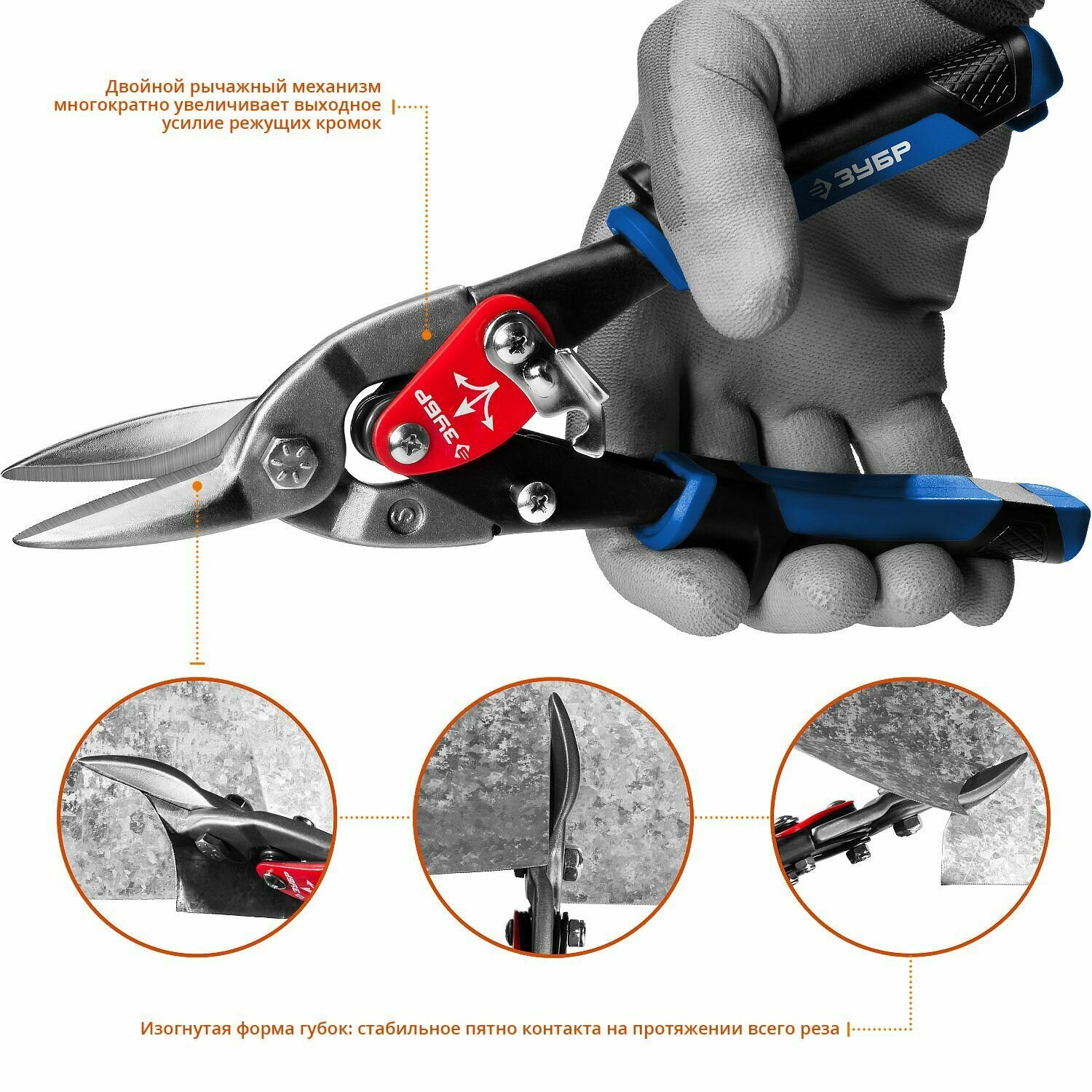 Ножницы по металлу ЗУБР мастер катран 250 мм, прямые, cr-mo