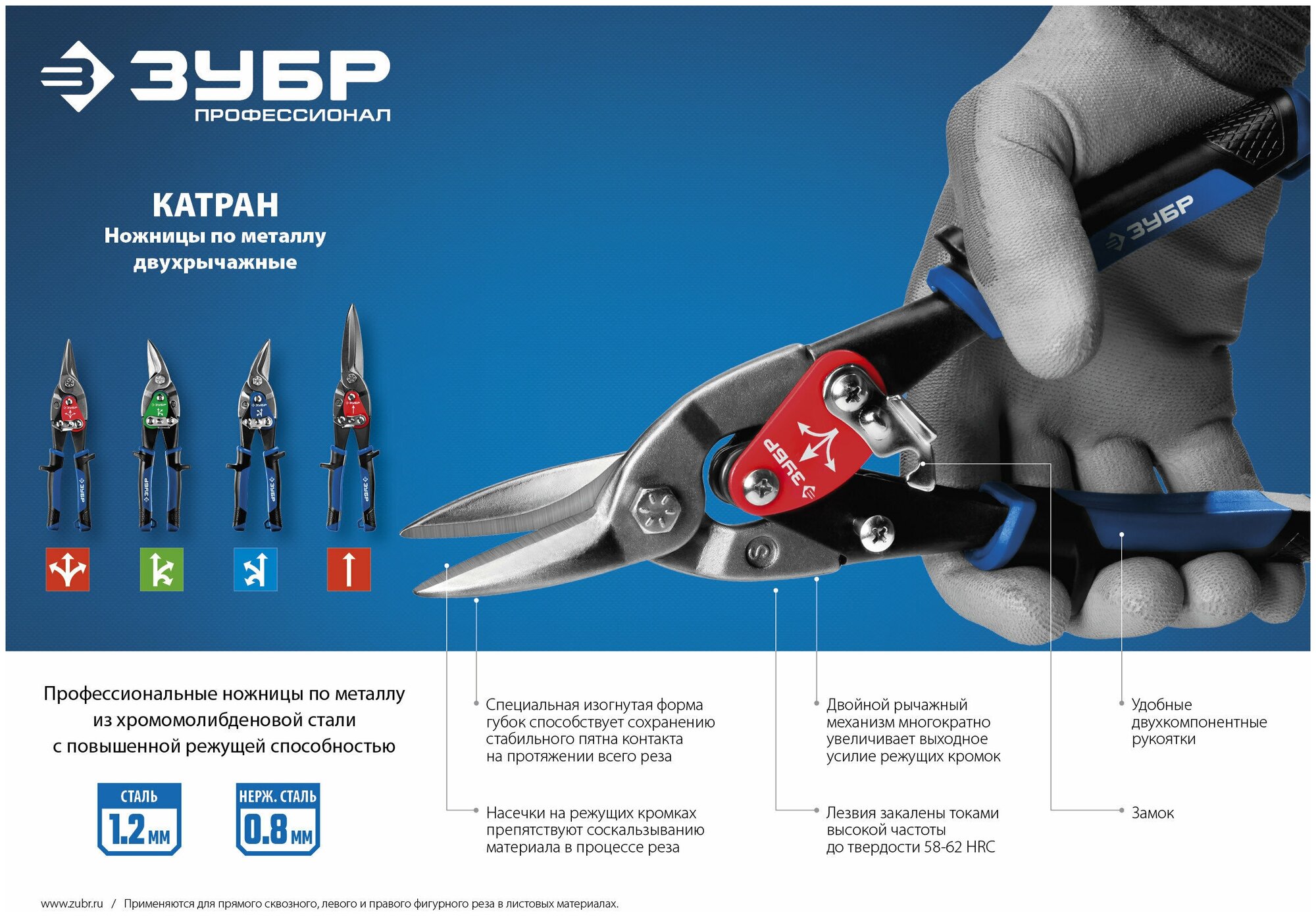 Прямые ножницы по металлу, 250 мм Профессионал Катран ЗУБР 23130-S
