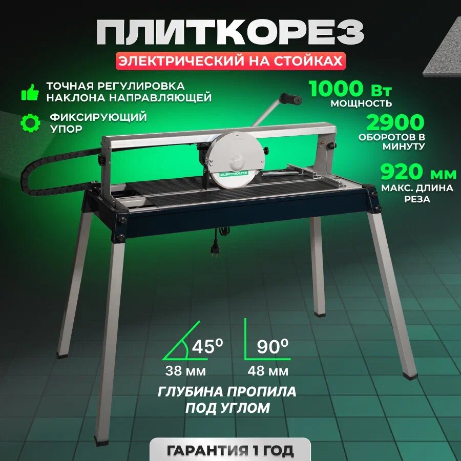 Плиткорез электрический / Плиткорез электрический с водяным охлаждением / Заусовщик для плитки под 45 Electrolite ЭПЛ 1000 EL ( 1000 Вт, длина реза 620 мм, диск 200 мм )