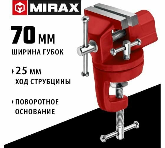Тиски MIRAX 70 мм, Настольные поворотные тиски для точных работ (32475-70) интересное: