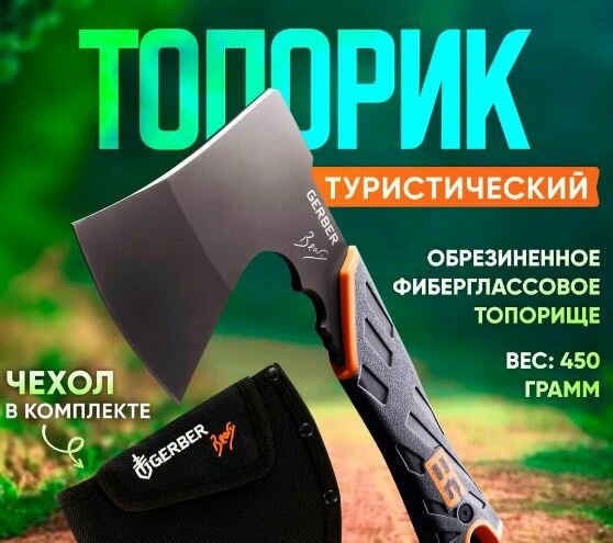 Топорик Gerber 24 см. туристический фиберглассовое обрезиненное топорище 450г. универсальный с защитным чехлом интересное: