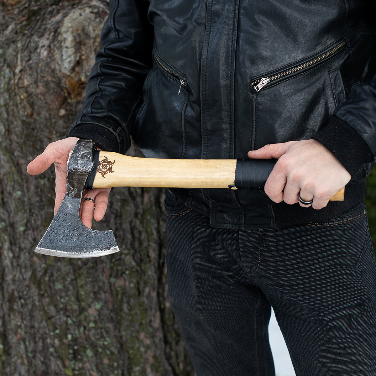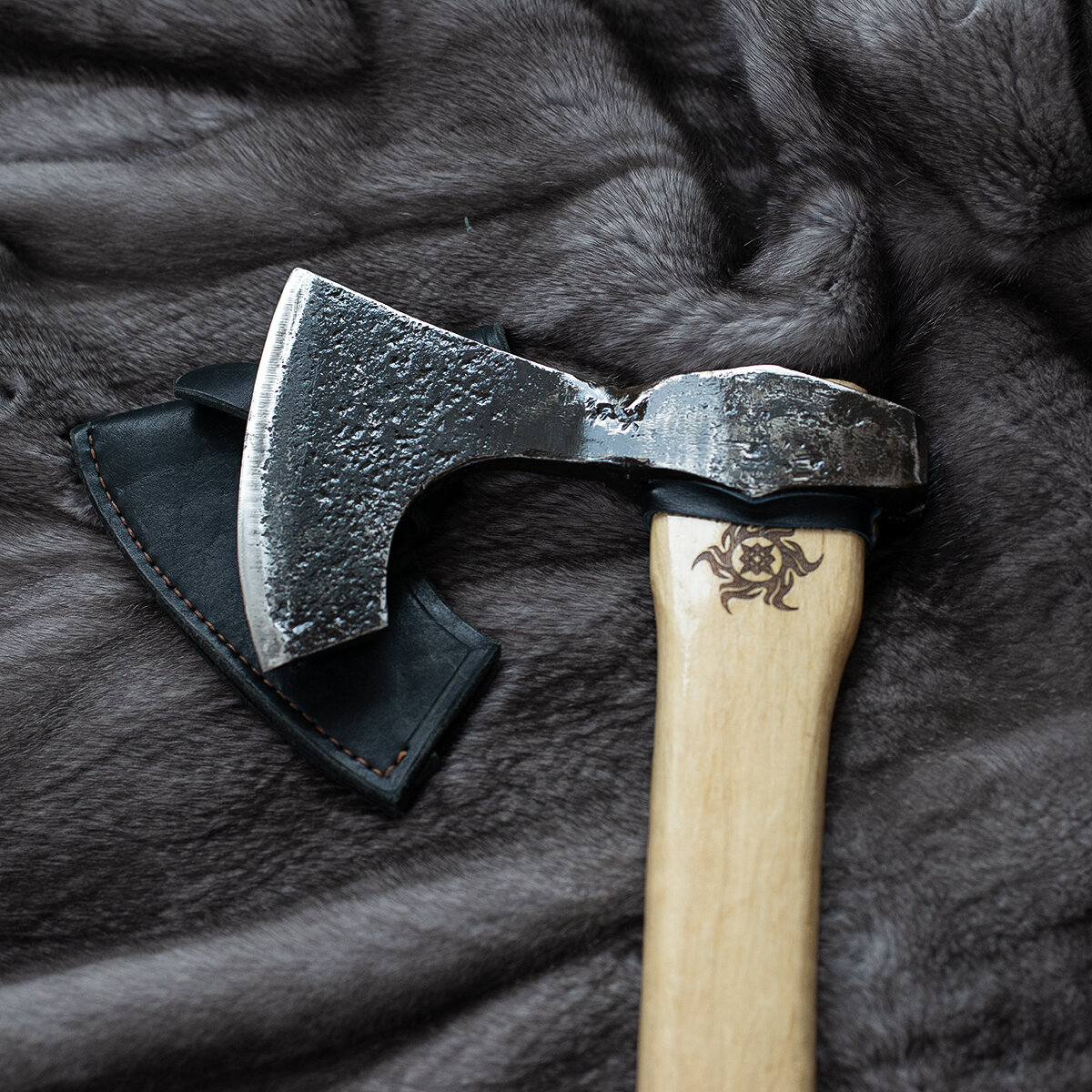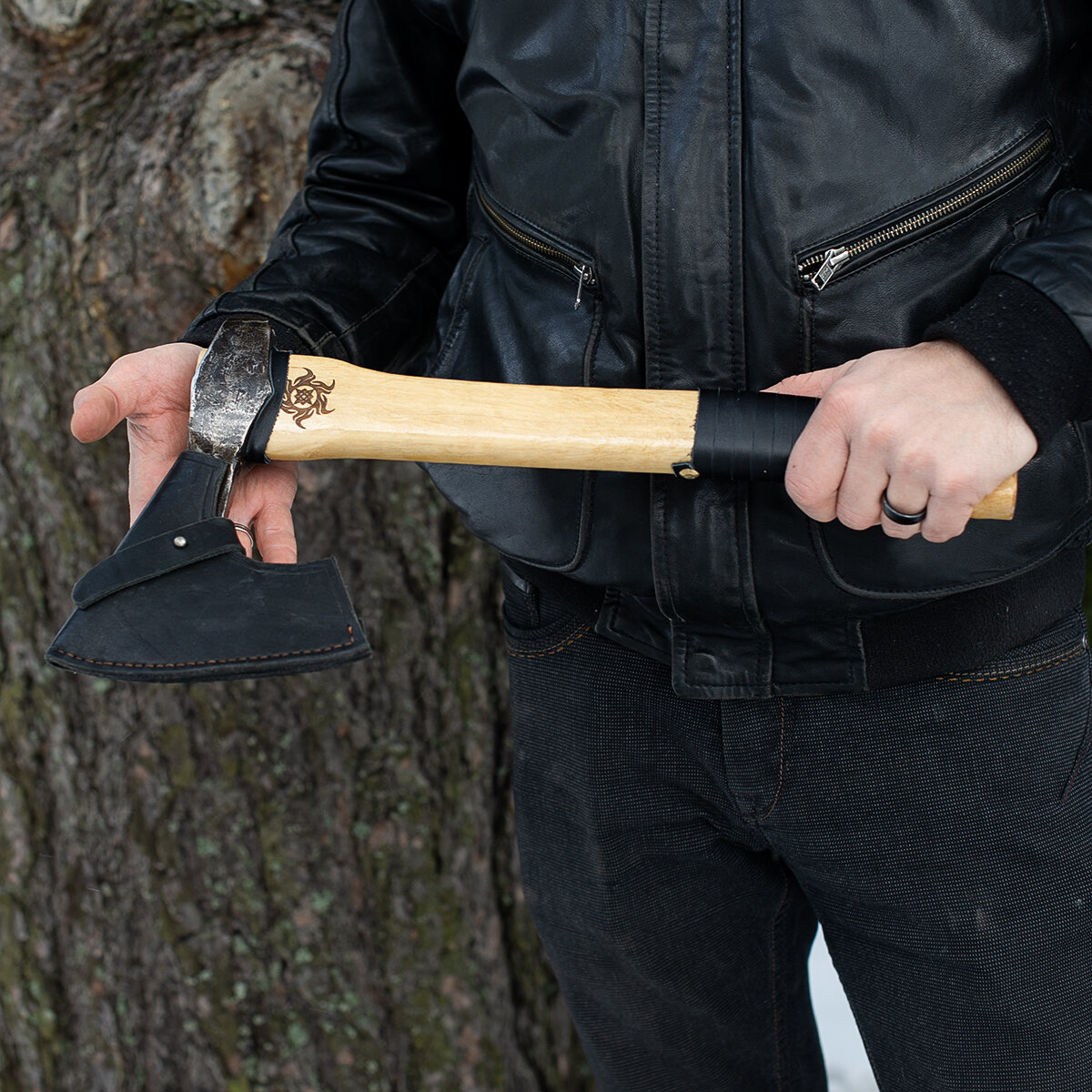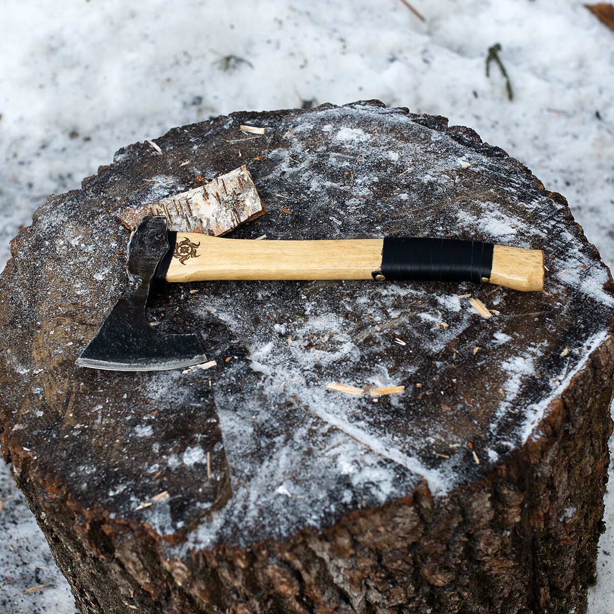 Топор японский MIZUNO 010-002 (сталь Аогами), рукоять дуб, кожаный чехол