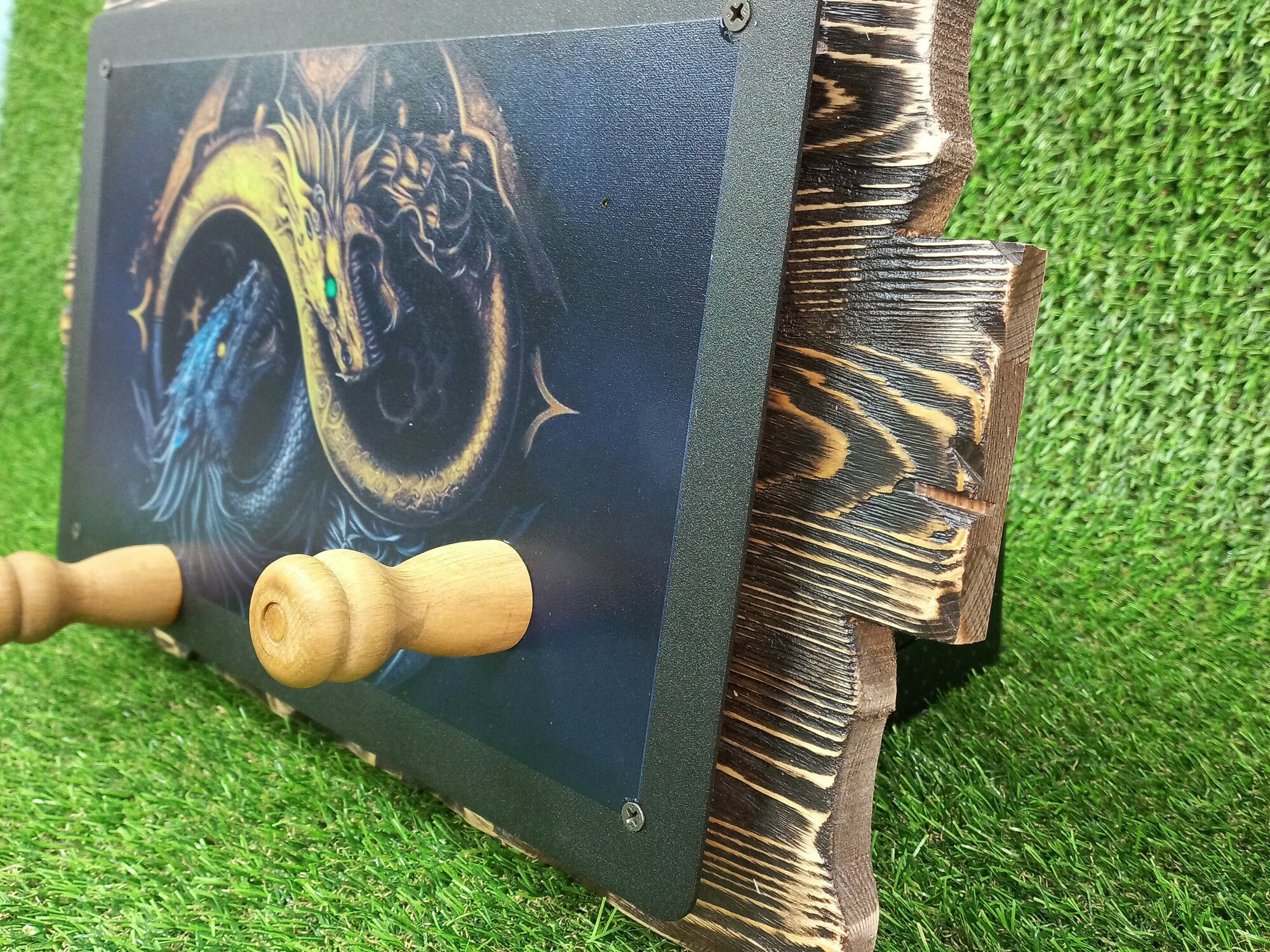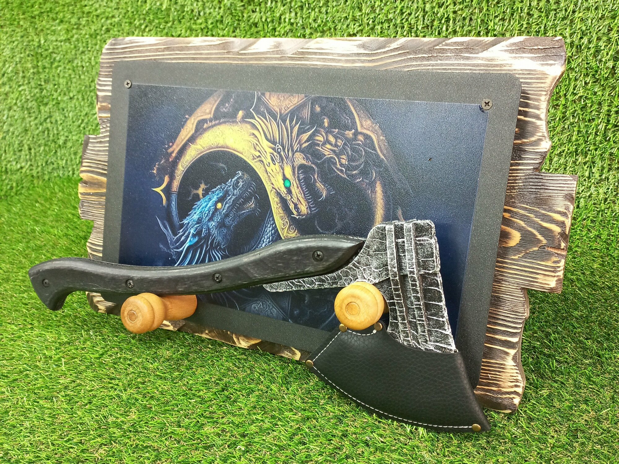 Подвес для топора Дракон,металл+фотопечать ,дерево сосна, металл 2 мм интересное: