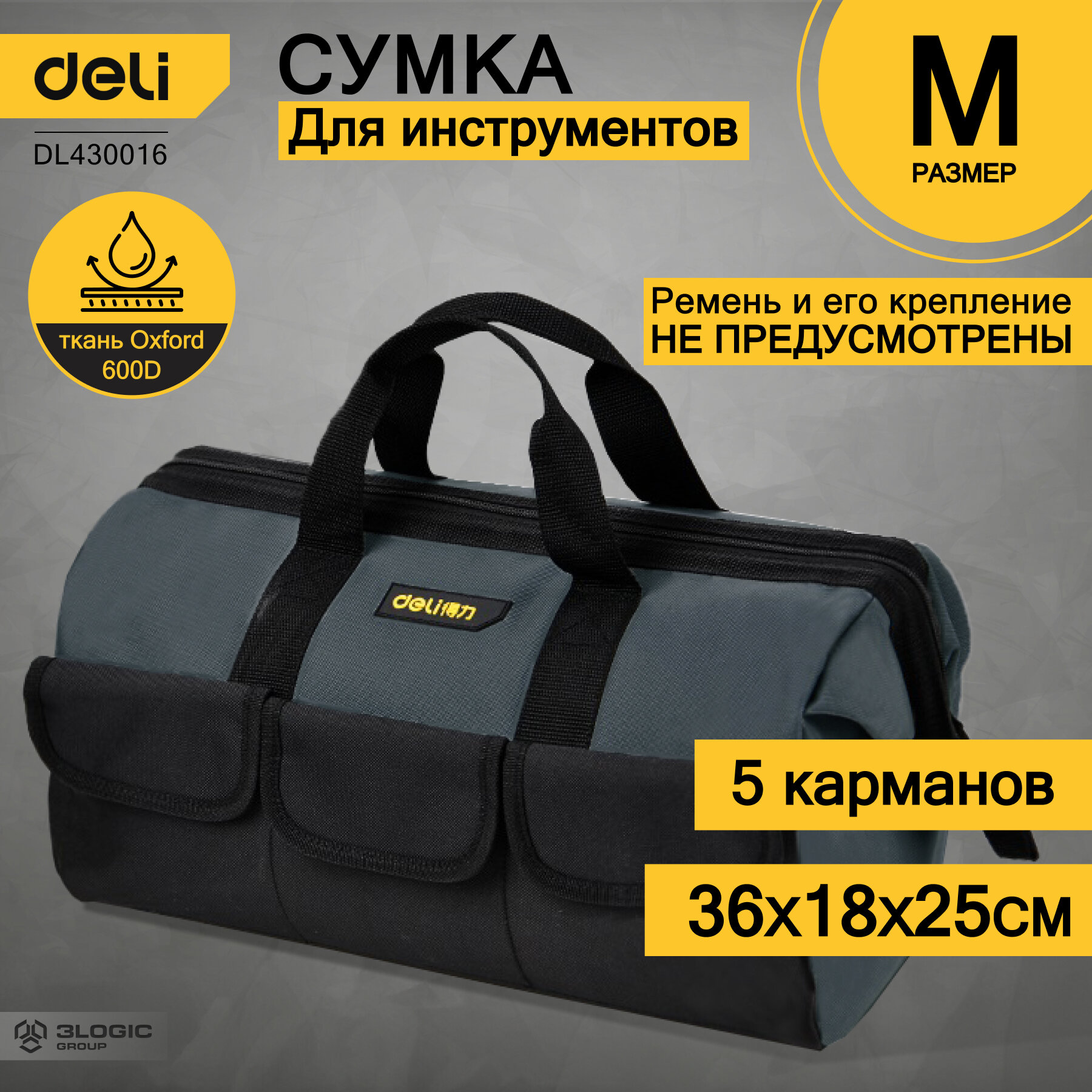 Сумка для инструментов DELI DL430016 360x180x250 мм (ткань oxford, 5 карманов, армированная) интересное:
