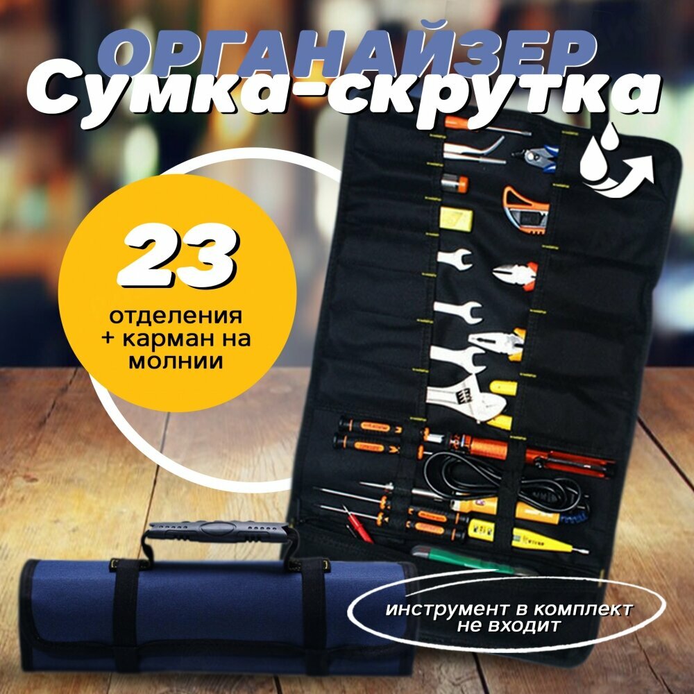 Сумка-скрутка синяя для хранения и транспортировки инструментов интересное: