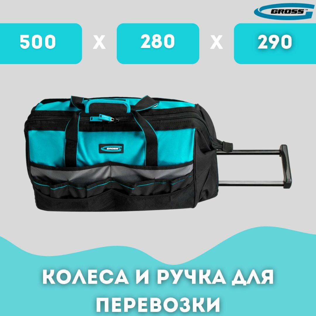 Сумка для инструмента, 500х280х290мм, выдвижная рукоятка, колеса, наплечный ремень// Gross