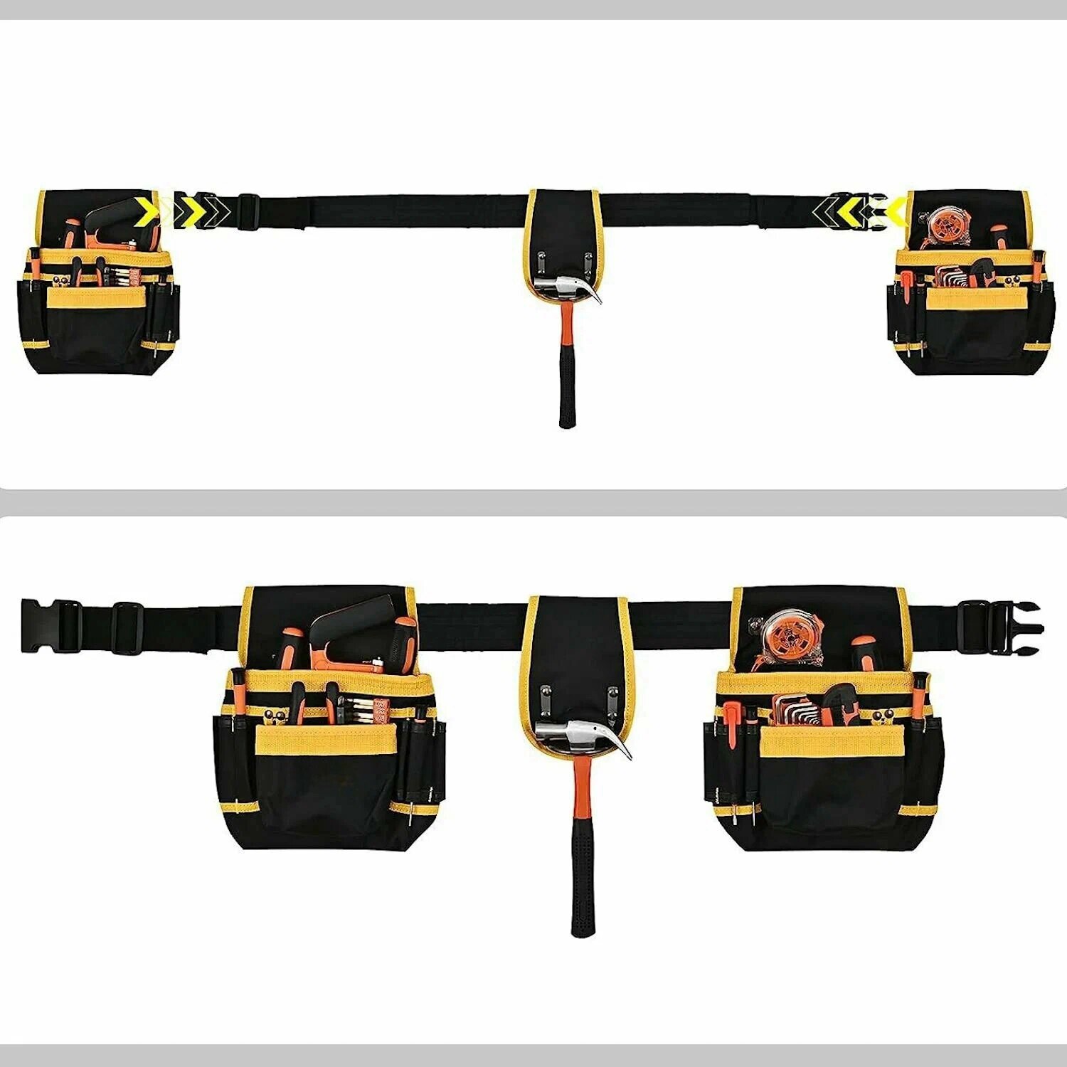 Сумка-пояс для инструментов универсальная строительная 28 карманов с держателем для молотка и рулетки