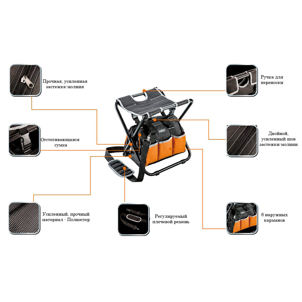 Ниже Вы можете прочитать отзывы на Сумка для инструмента NEO со складным табуретом, ознакомится с подробными характеристиками, посмотреть интересные обзоры и фотографии на Сумка для инструмента NEO со складным табуретом.