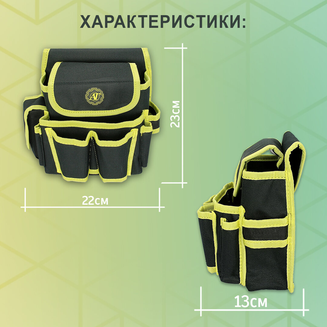 Сумка для инструментов 7 отделений 22х23х13 см / Сумка строительная на пояс / Пояс для инструментов интересное: