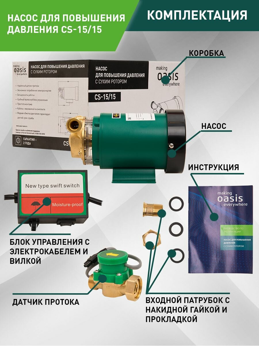 | Подробная комплектация | Насос с инструкцией - 1 шт; Блок управления с электрокабелем и вилкой - 1 шт; Входной патрубок с накидной гайкой и прокладкой - 1 шт; Датчик потока с накидной гайкой и прокладкой - 1 шт; Упаковочная коробка - 1 шт. |