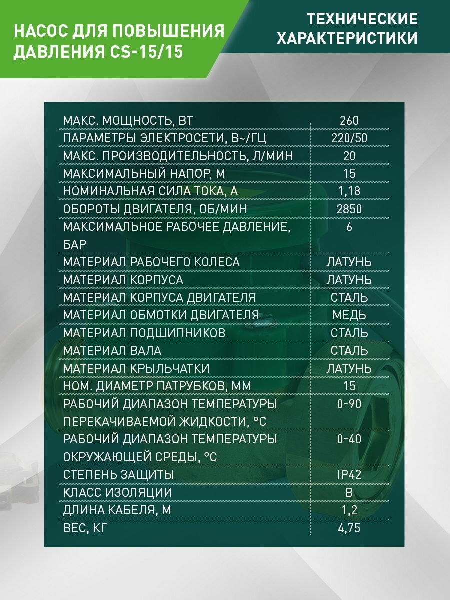 Насос поверхностный для повышения давления воды c сухим ротором CS-15/15, электрический циркуляционный