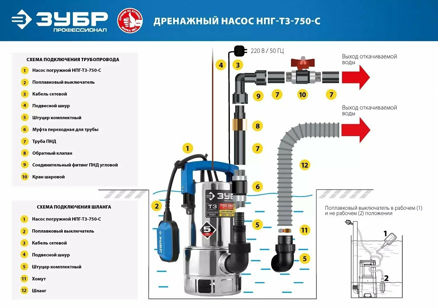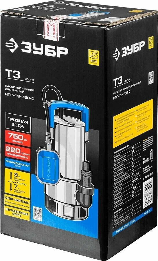 Насос погружной дренажный для грязной воды, Профессионал, ЗУБР 750 Вт, 220 л/мин интересное: