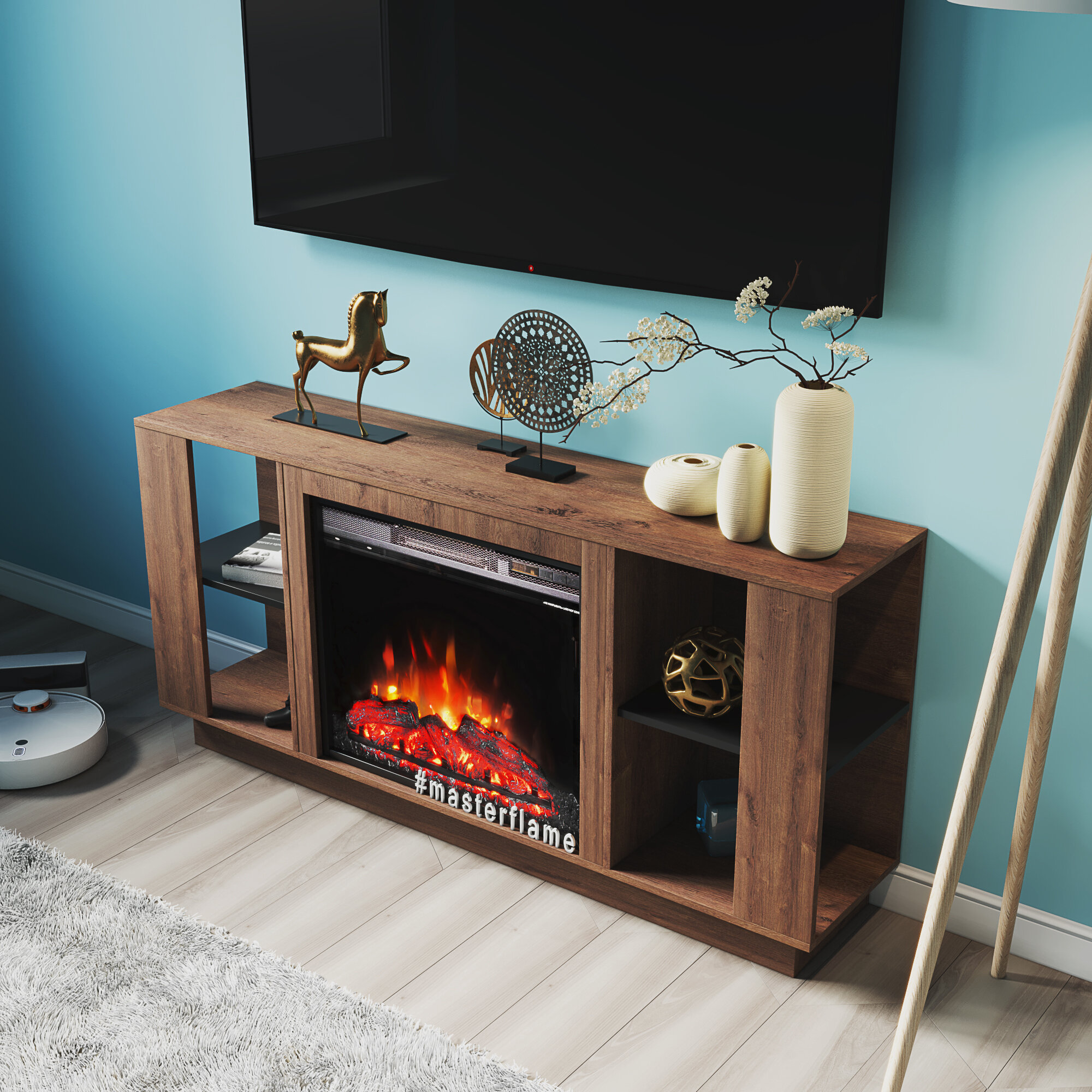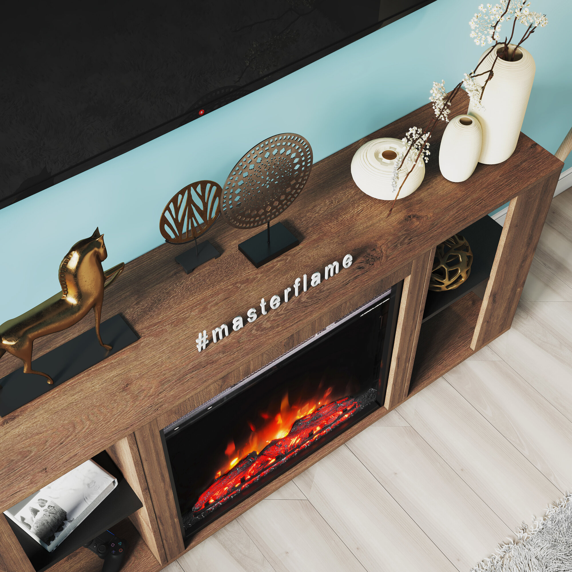 Электрический камин Антарес TV-тумба с эффектом живого огня и обогревом, пульт ДУ