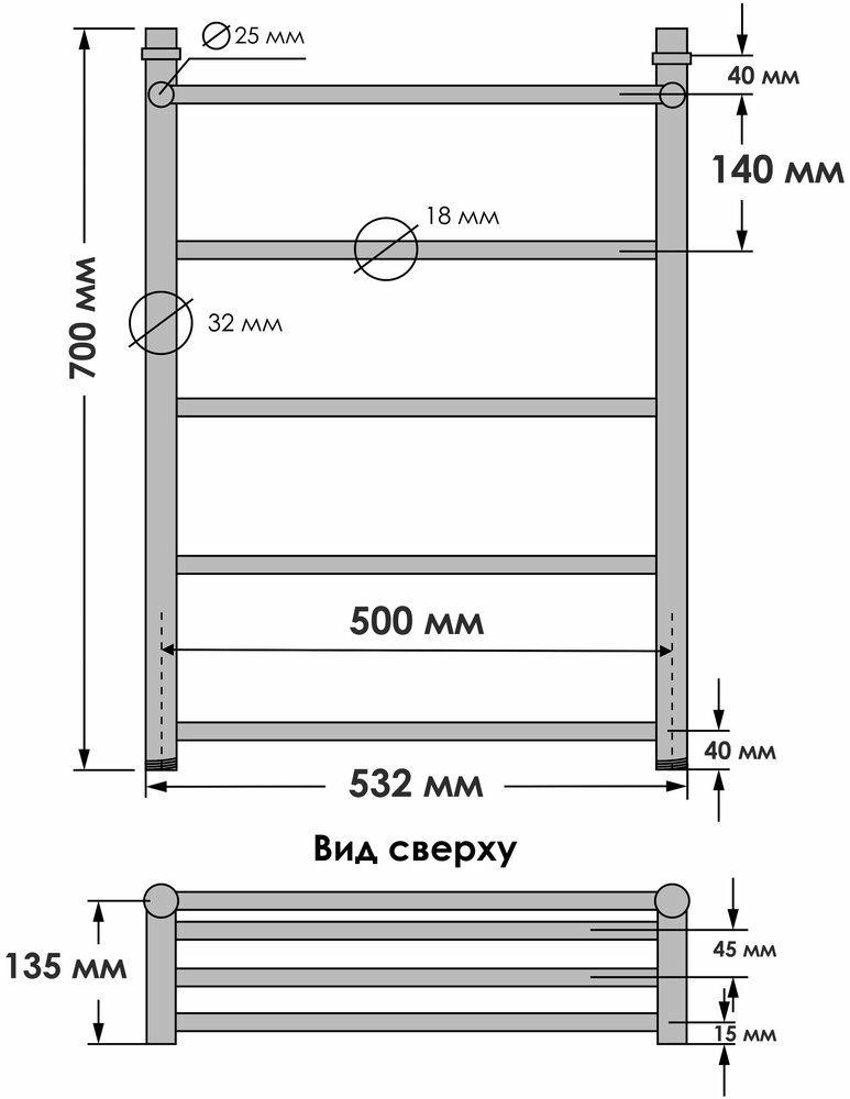 Водяной полотенцесушитель Aquanet Mauro(г2) 800x500