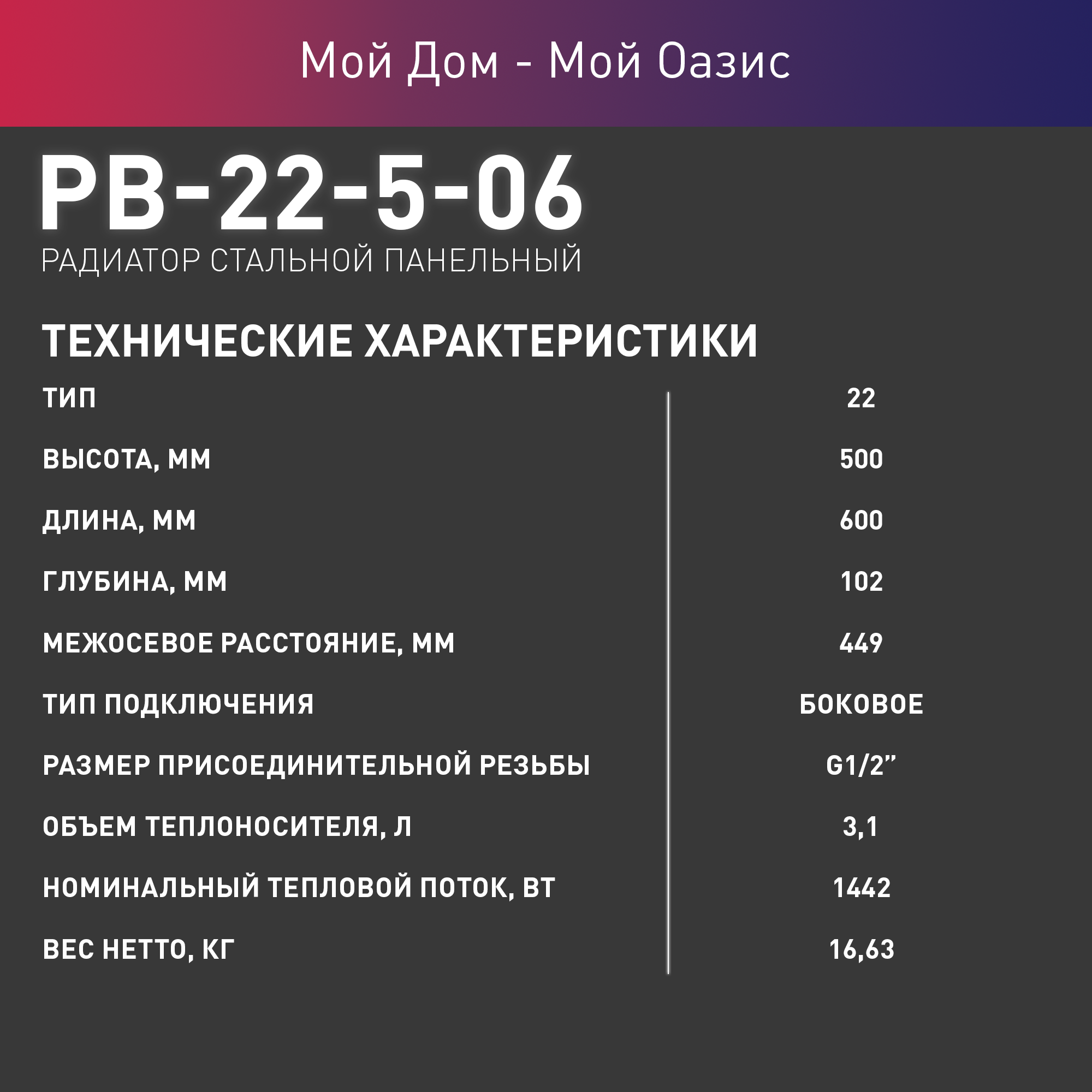 Радиатор отопления стальной панельный Oasis Pro PB 22-5-10, боковое подключение