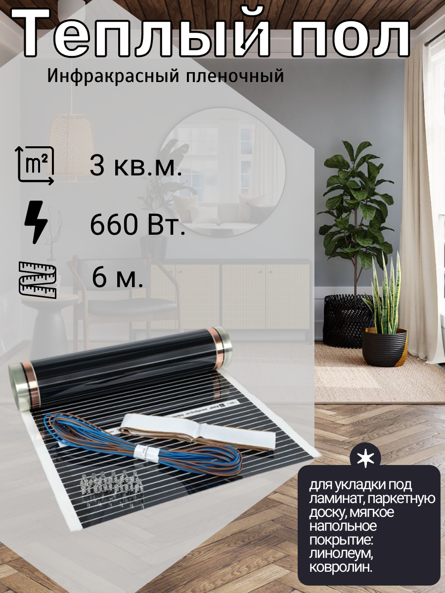 Комплект "Теплый пол" (пленка) 660Вт 3кв. м шир. 0.5м инфракрасный EKF Ik-220-660/0.5-3 ( 1шт. )