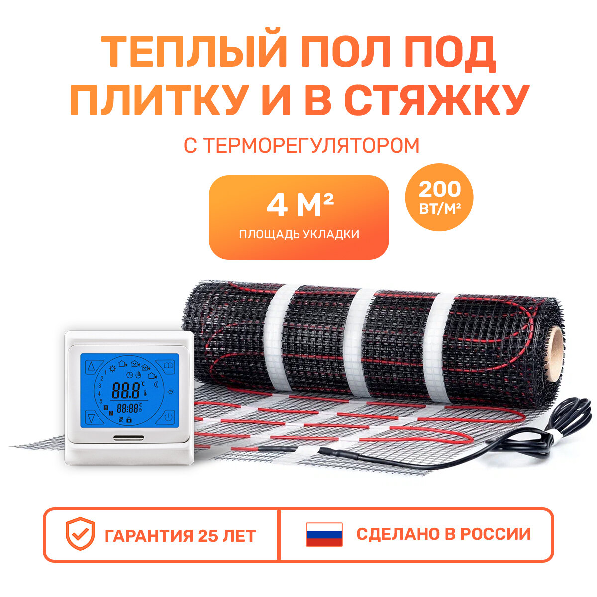 Купить Электрический теплый пол 4 м2 с сенсорным белым терморегулятором Тепло и Точка, 200 Вт/м2 двужильный экранированный нагревательный мат под плитку