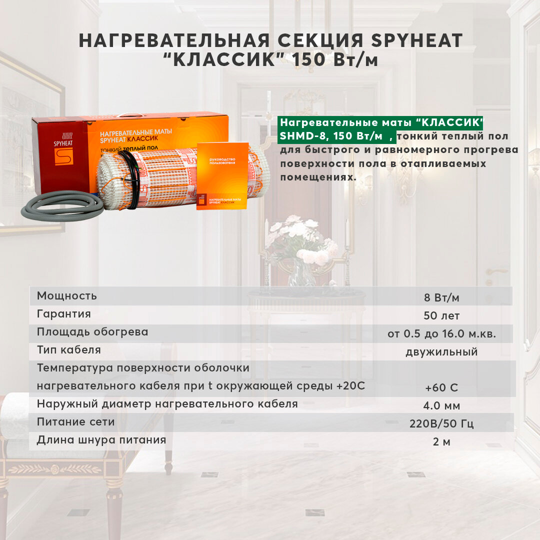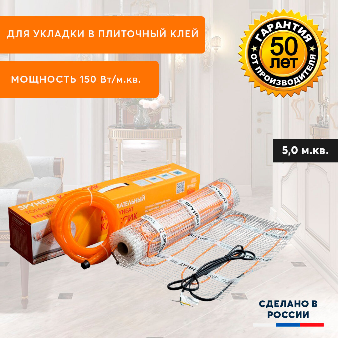 Теплый пол электрический/Нагревательный мат в стяжку/плиточный клей" классик " 8-750, площадь 5,0м2 интересное:
