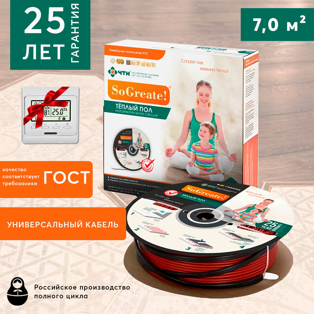 Нагревательный кабель Теплый пол под плитку/керамогранит ЧТК СНТ-18-1044 длина 58,0м, в подарок Программируемый Терморегулятор! интересное: