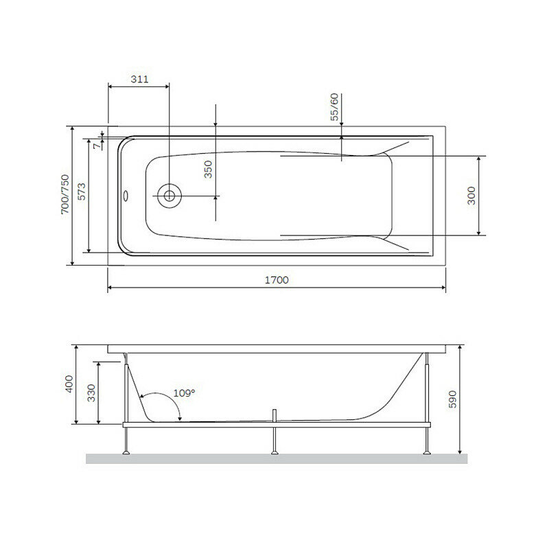 Акриловая ванна AM.PM Gem 170x70 W90A-170-070W-A1