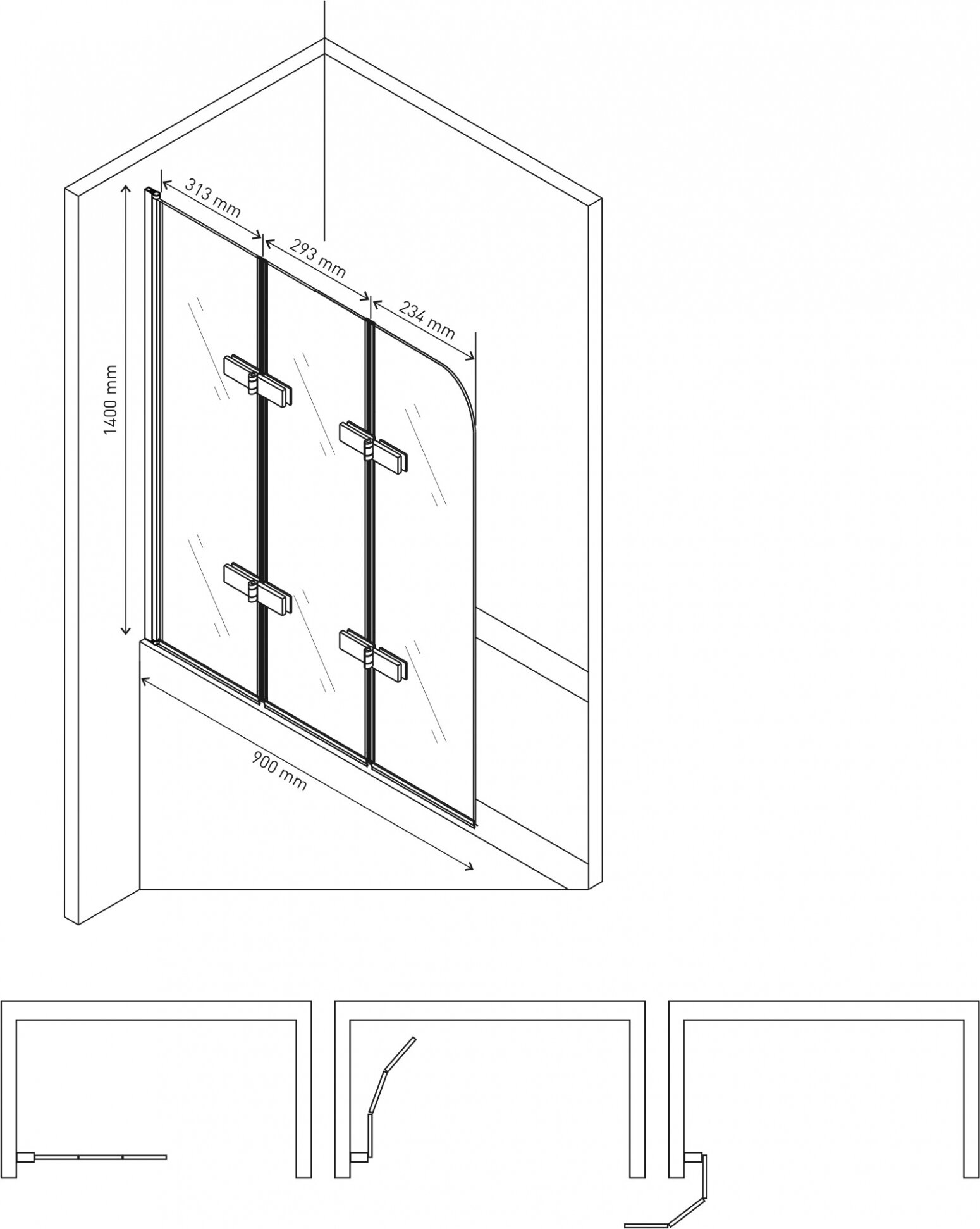 Шторка для ванны 90 см Berges City 2.0 062013 прозрачное интересное: