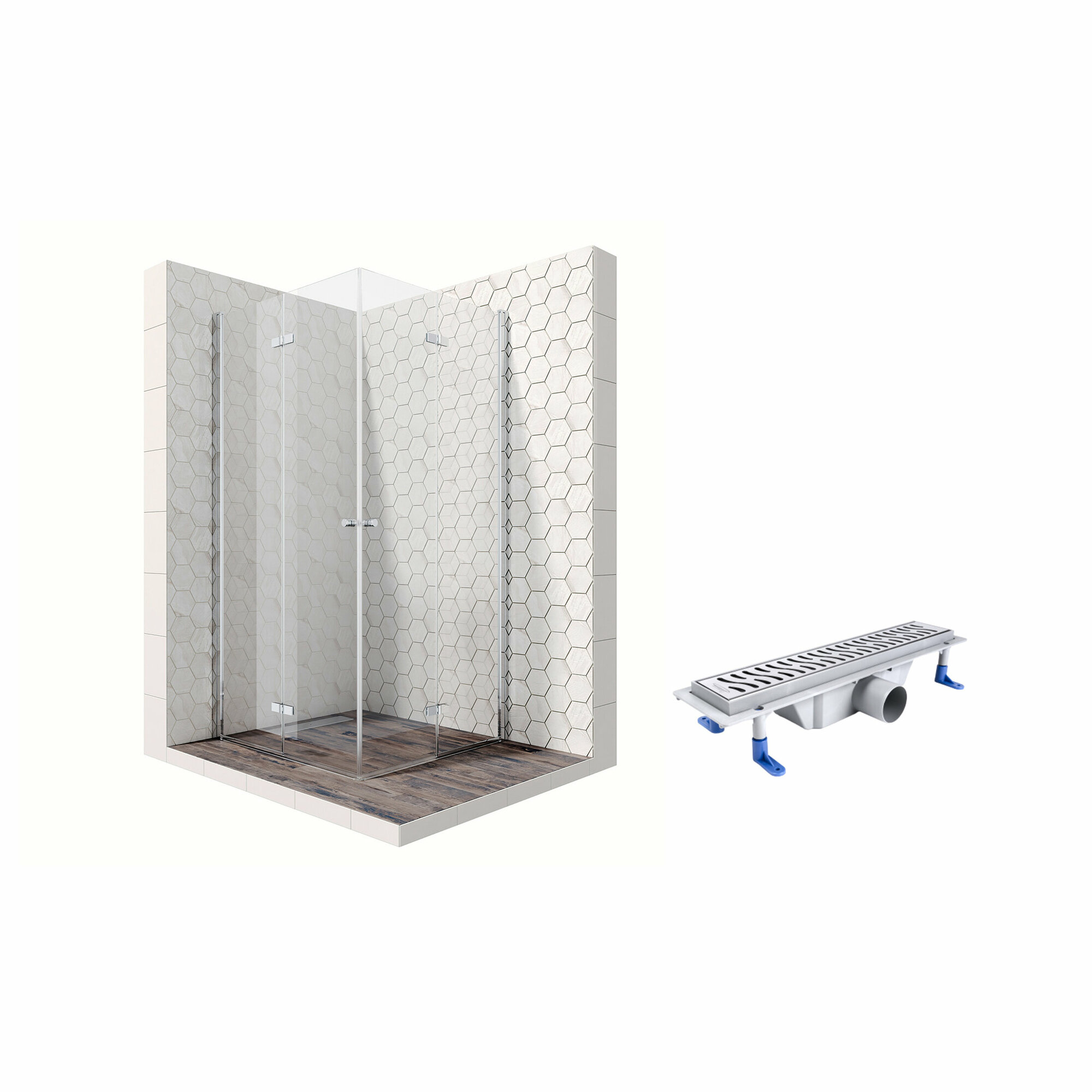 Комплект квадратного душевого ограждения с линейным трапом Ambassador Diamond 12011103L-ST8, с EasyClean, 100 х 100 см