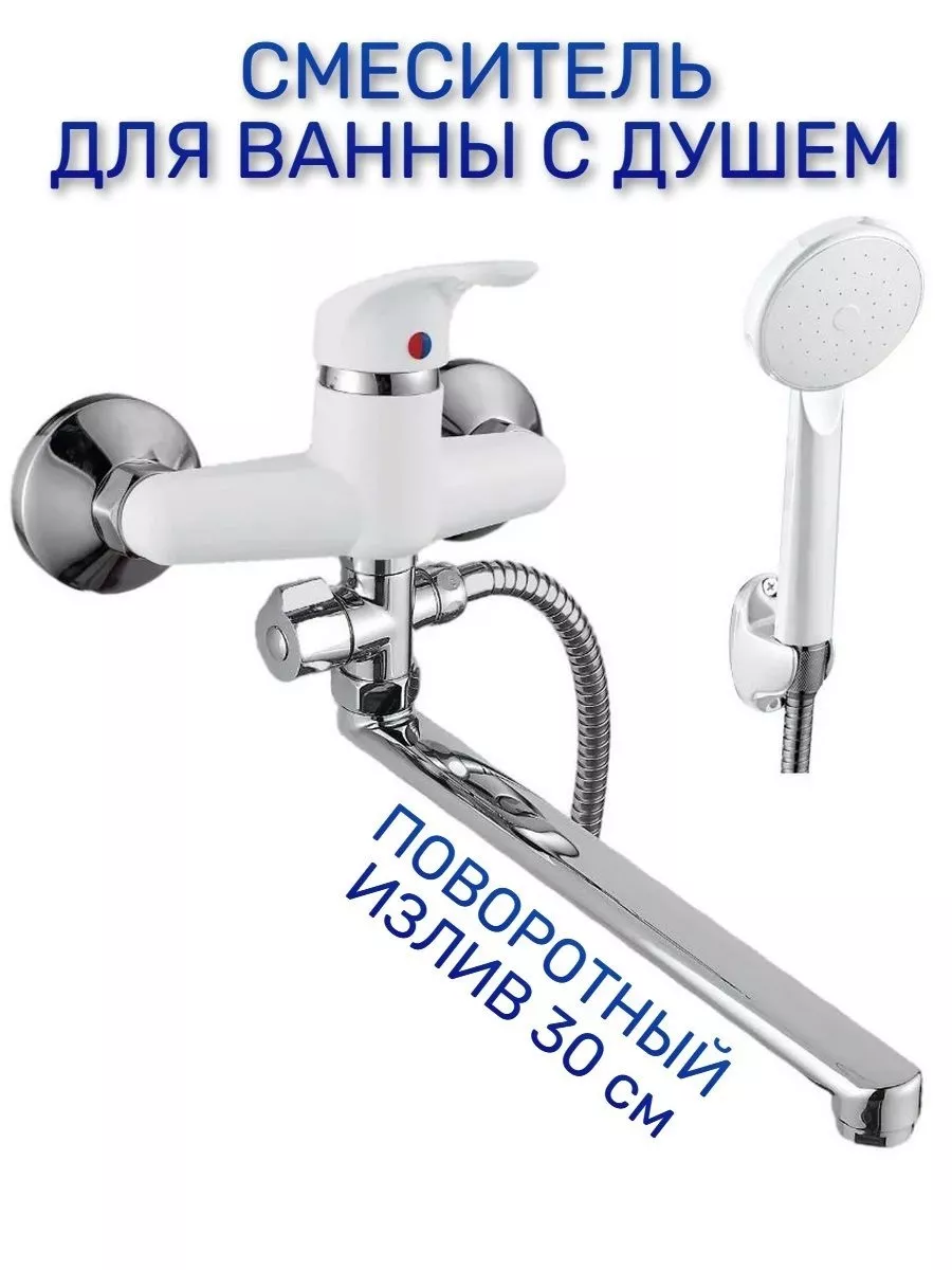 Белый смеситель для ванны с душем длинный поворотный излив B21-033 Эверест интересное: