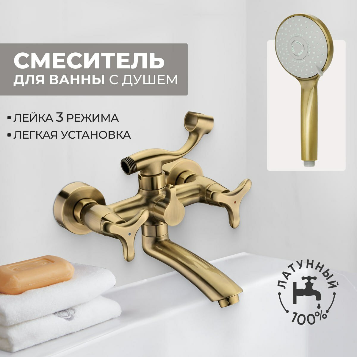 Смеситель для ванны с душем латунный TRIGOR SBC3-BZ-533, цвет: бронза интересное: