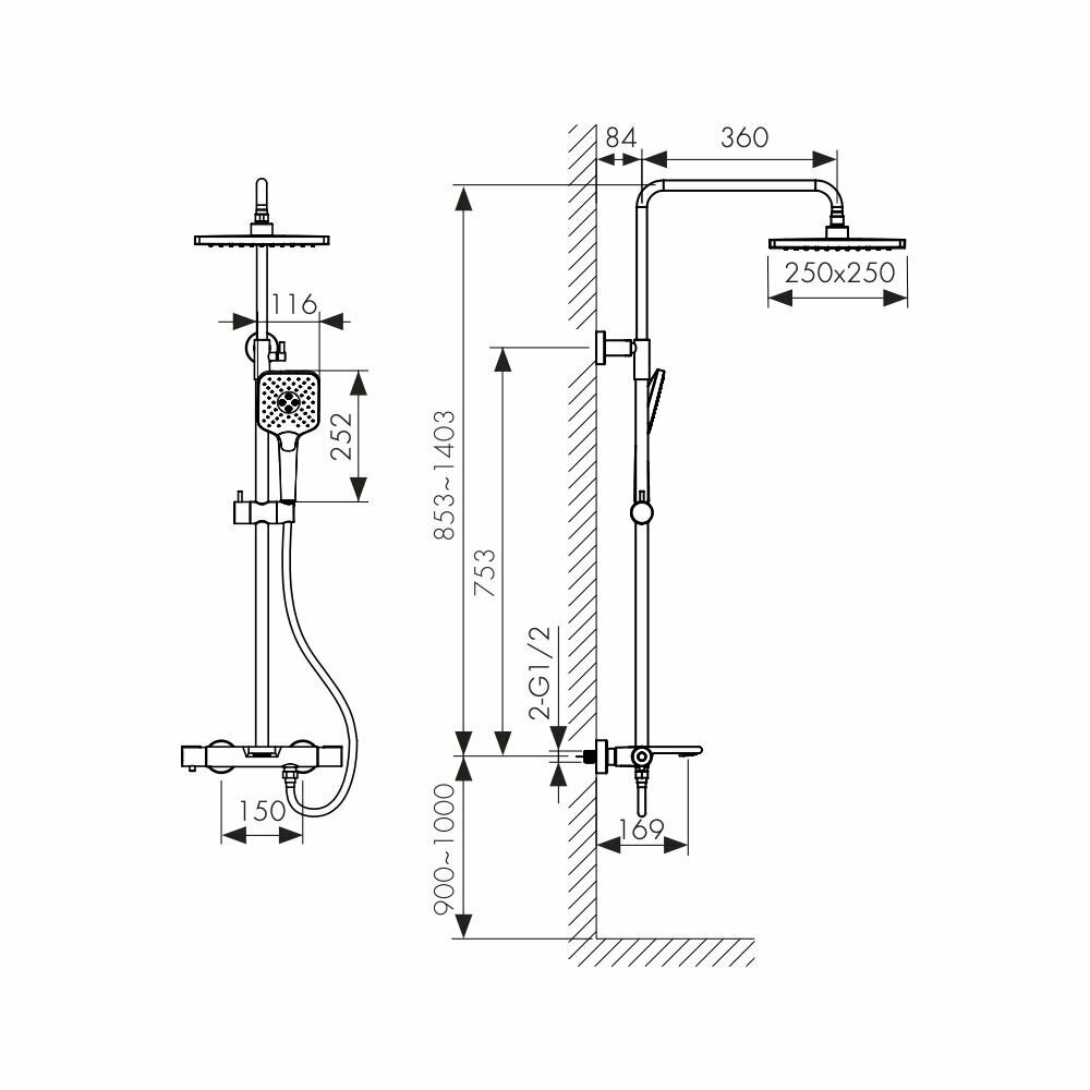 Сохранить05382-15 KAISER Serio Душевая система с термостатом (стац. лейка 250х250), латунь, Gun metal интересное: