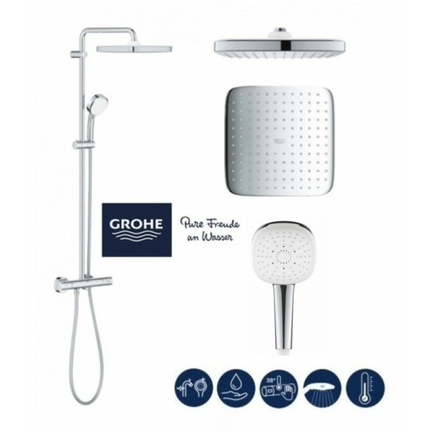 Душевая стойка с термостатом Grohe Tempesta System 250 Cubе NEW 26689001 хром/квадратная лейка интересное: