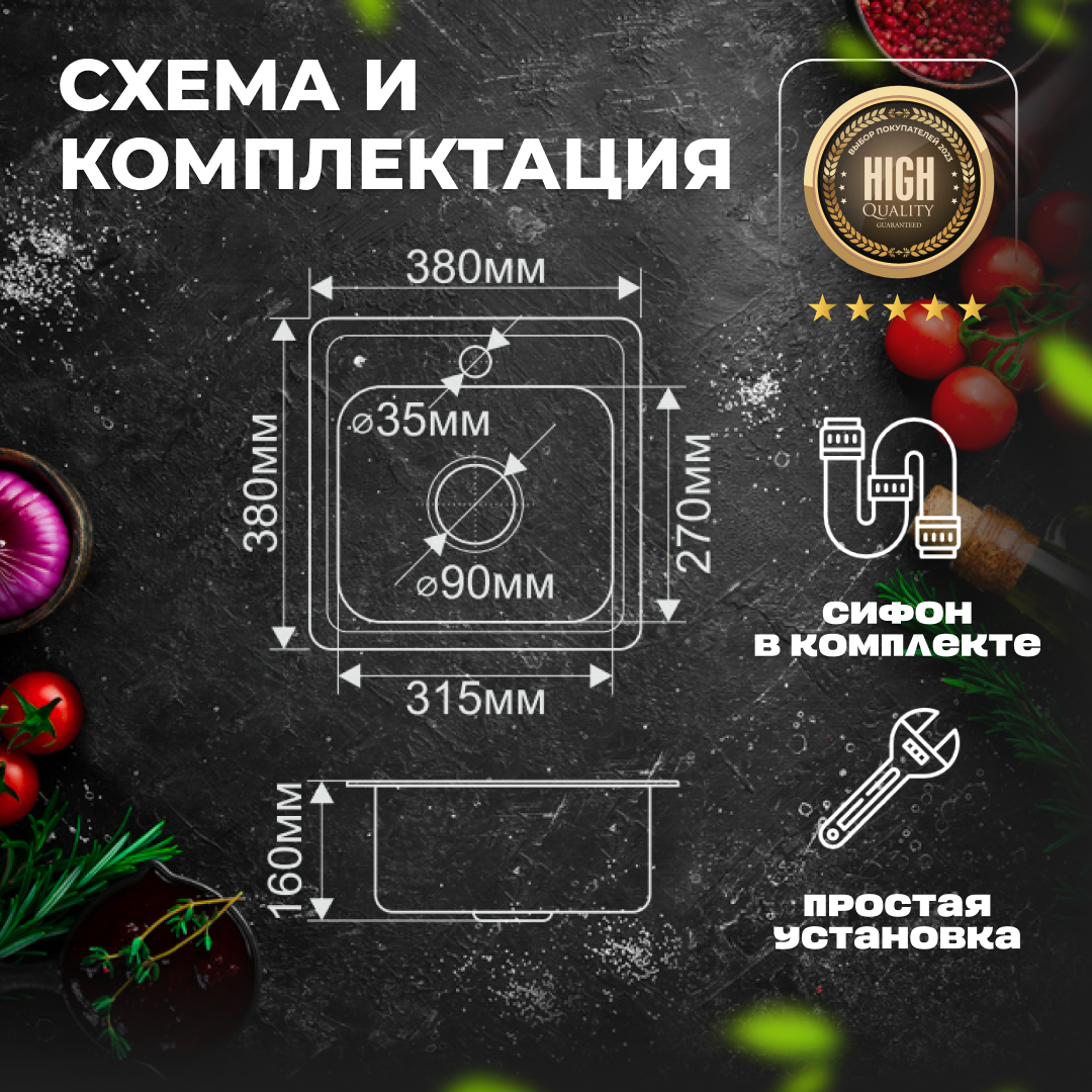 Мойка 3838 MELANA 0,6/160 врезная квадратная с сифоном (022 t *15) интересное: