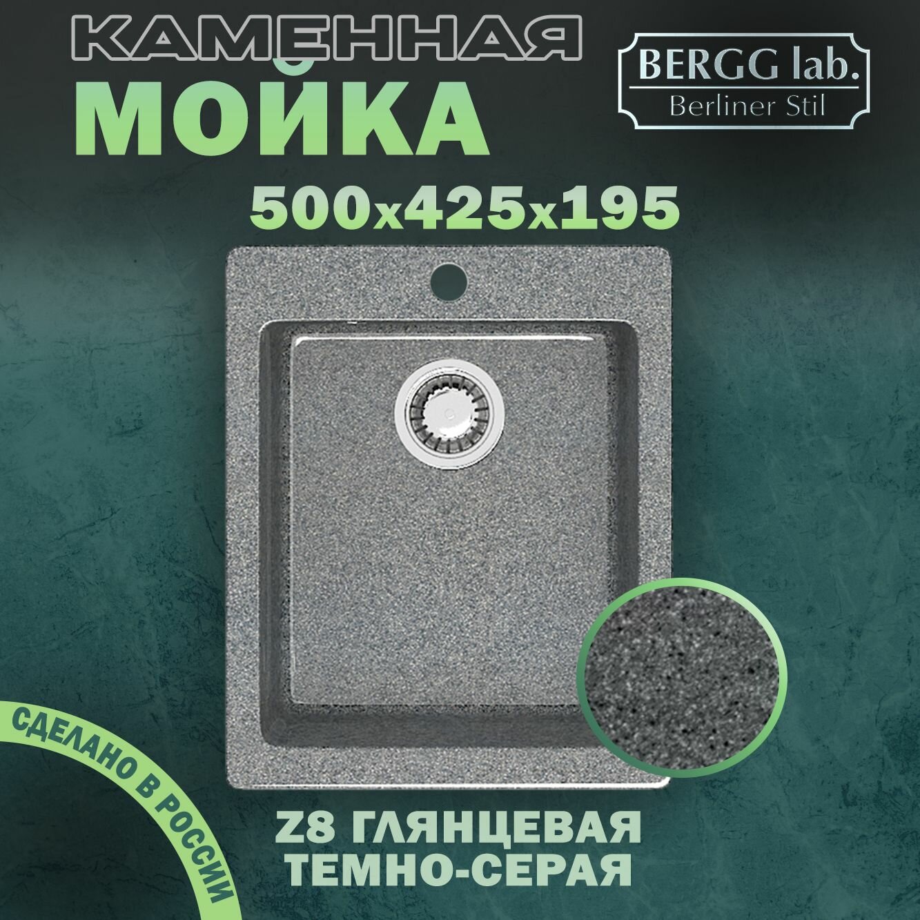 Мойка для кухни/Раковина для кухни BERGG lab., глянцевая с блестками Z8 темно-серый (50х42,5х19,5 см)
