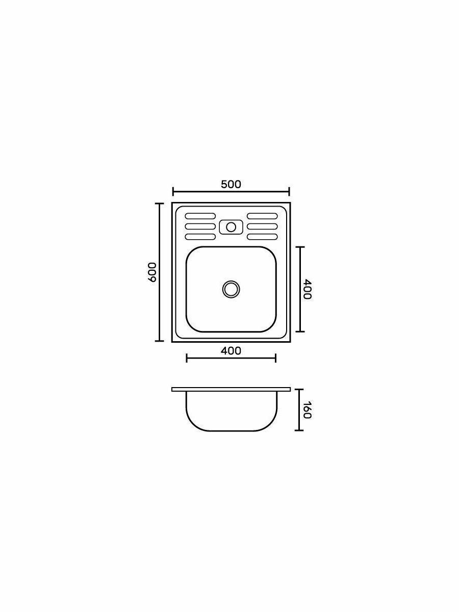Мойка накладная 50х60 см, толщина 0,4 мм, глубина 160 мм, без сифона
