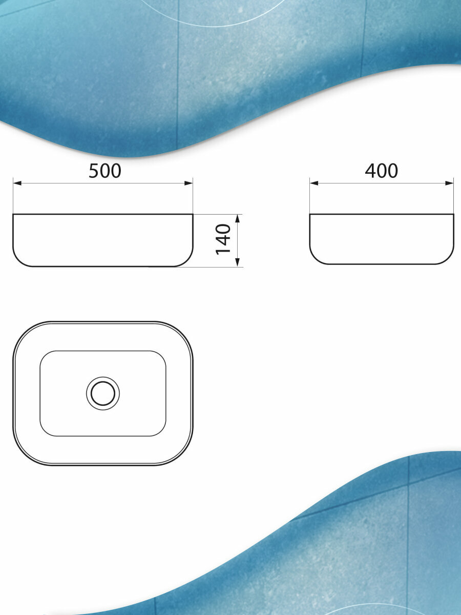 Раковина накладная прямоугольная BAU Stil PRO 50х40, белая
